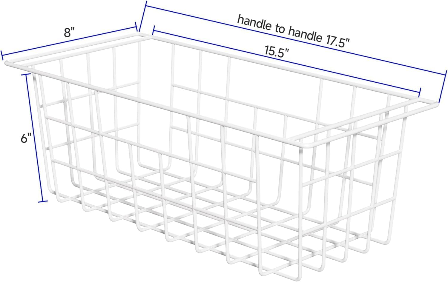 - Please ensure you measure the freezer gap and the ledges.The gap should be at least 15.5“, with the ledge to ledge between 15.5“and 17.5”.Basket dimensions with handles: 17.5"(W) x 6"(H)x 8"(D); excluding handles width: 15.5".
