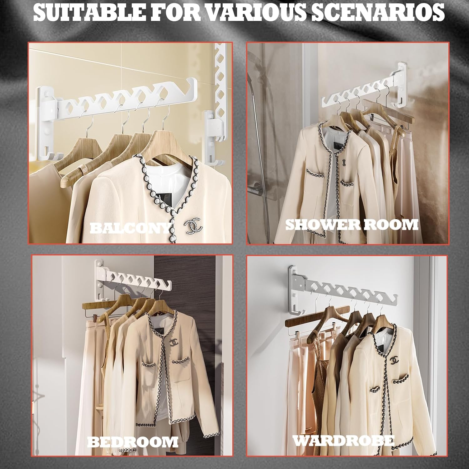 - 【MODERN DESIGN SENSE】Wall hanging hangers are suitable for any place that needs hanging space, not only can be placed in bedrooms, laundry rooms, bathrooms, kitchens, but also can be installed outdoors such as balconies to save space, simple and modern The sense of design not only adds beauty to the application place, but also can be applied in every remote corner, saving you space to the greatest extent