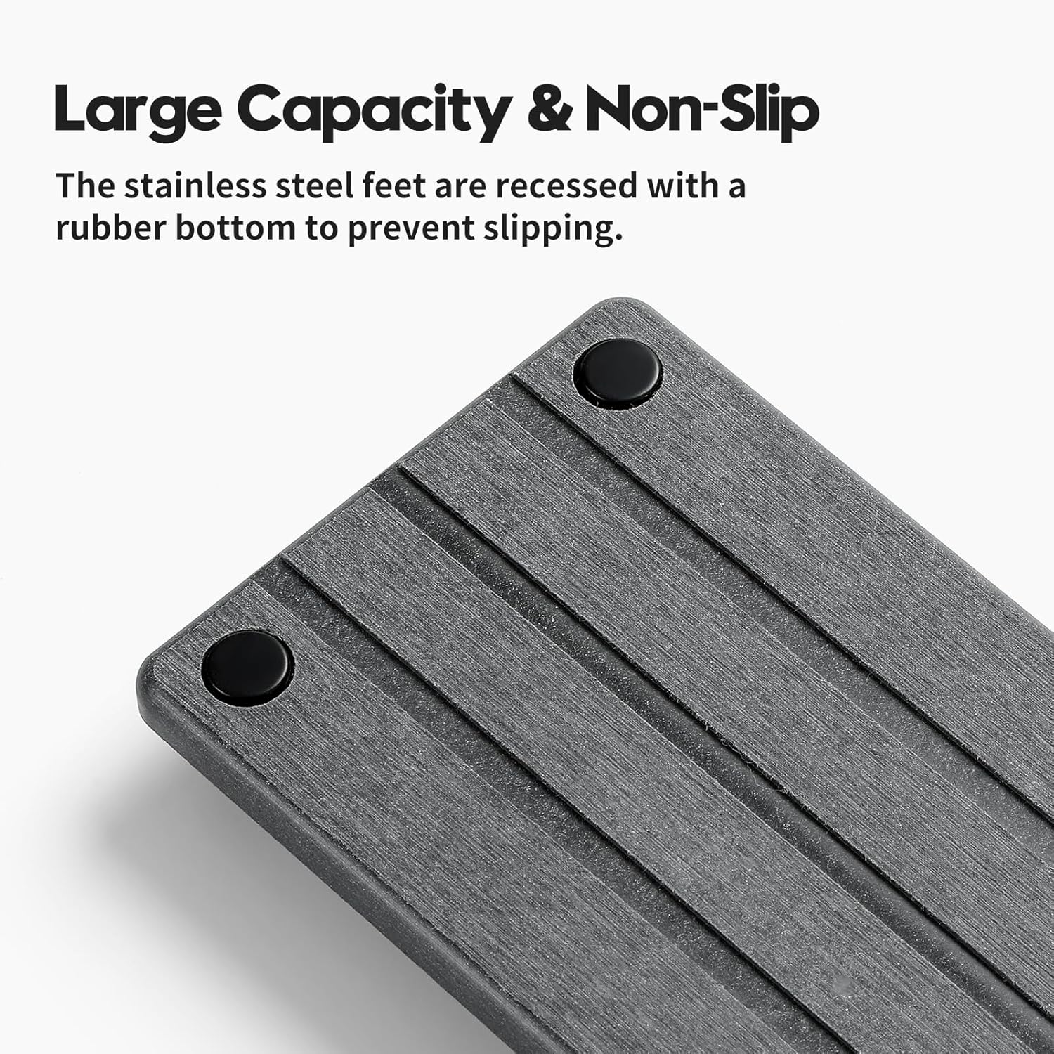 - 【Size and Capacity】This sink caddy has a larger capacity due to the recessed feet. The 4 feet are made of high-grade stainless steel material with non-slip rubber feet, rust-proof. Size: 10"L x 4"W x 1"H. Set of 2 PCS