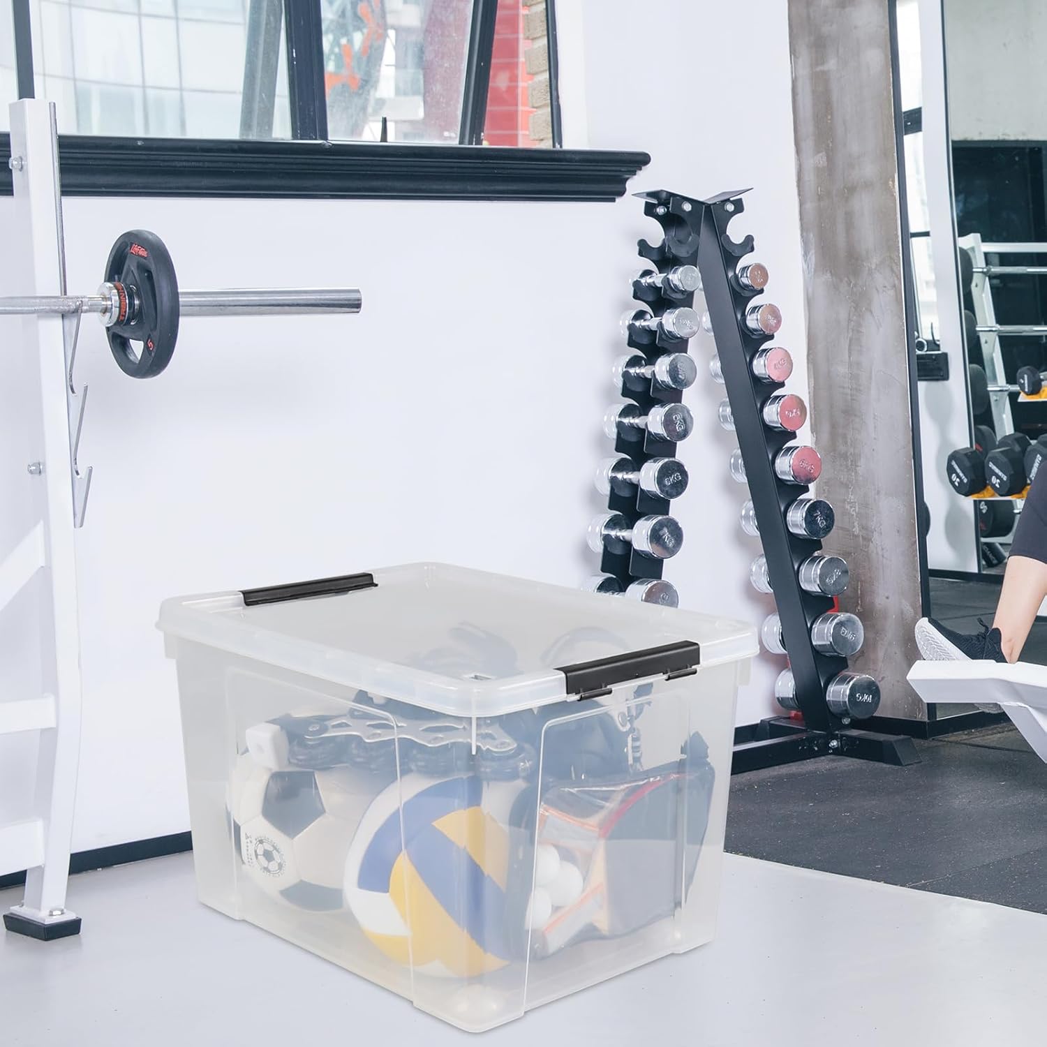 50 L Large Plastic Storage Bins with Latching Lids and Wheels, 4-Pack Clear Stackable Boxes for Closet, Garage