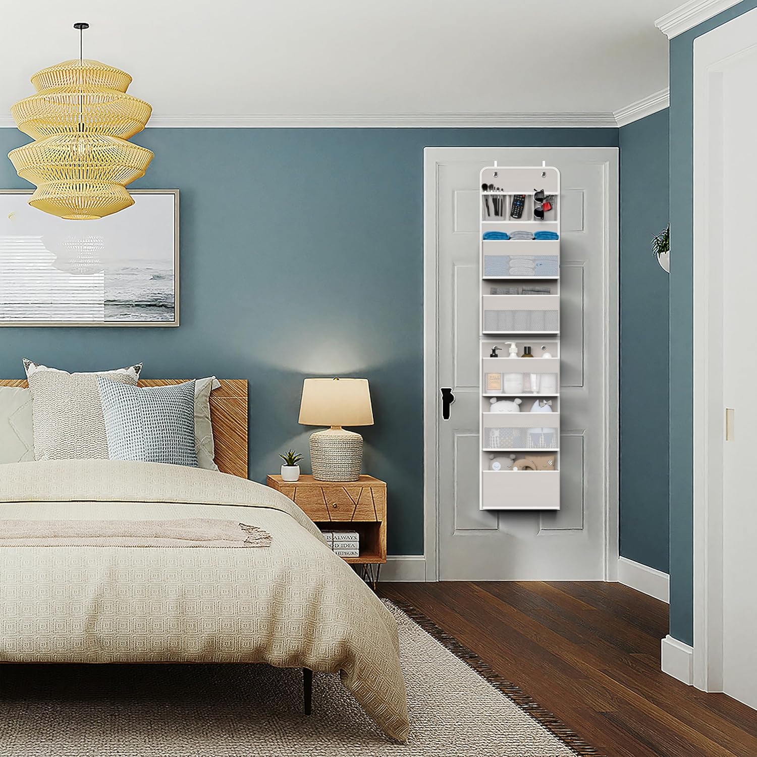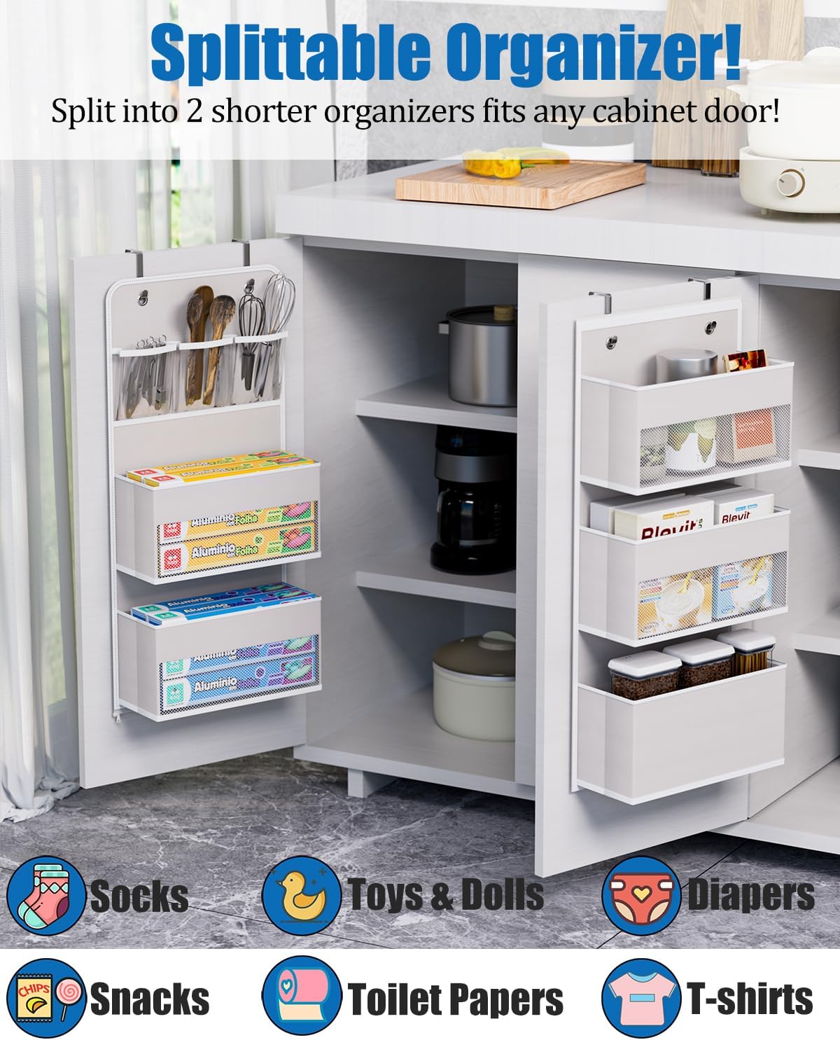 - - For All Space: You can install this over door organizer as a whole long organizer or split it into 2 short storage for bedroom, closet, baby room, bathroom, kitchen, etc