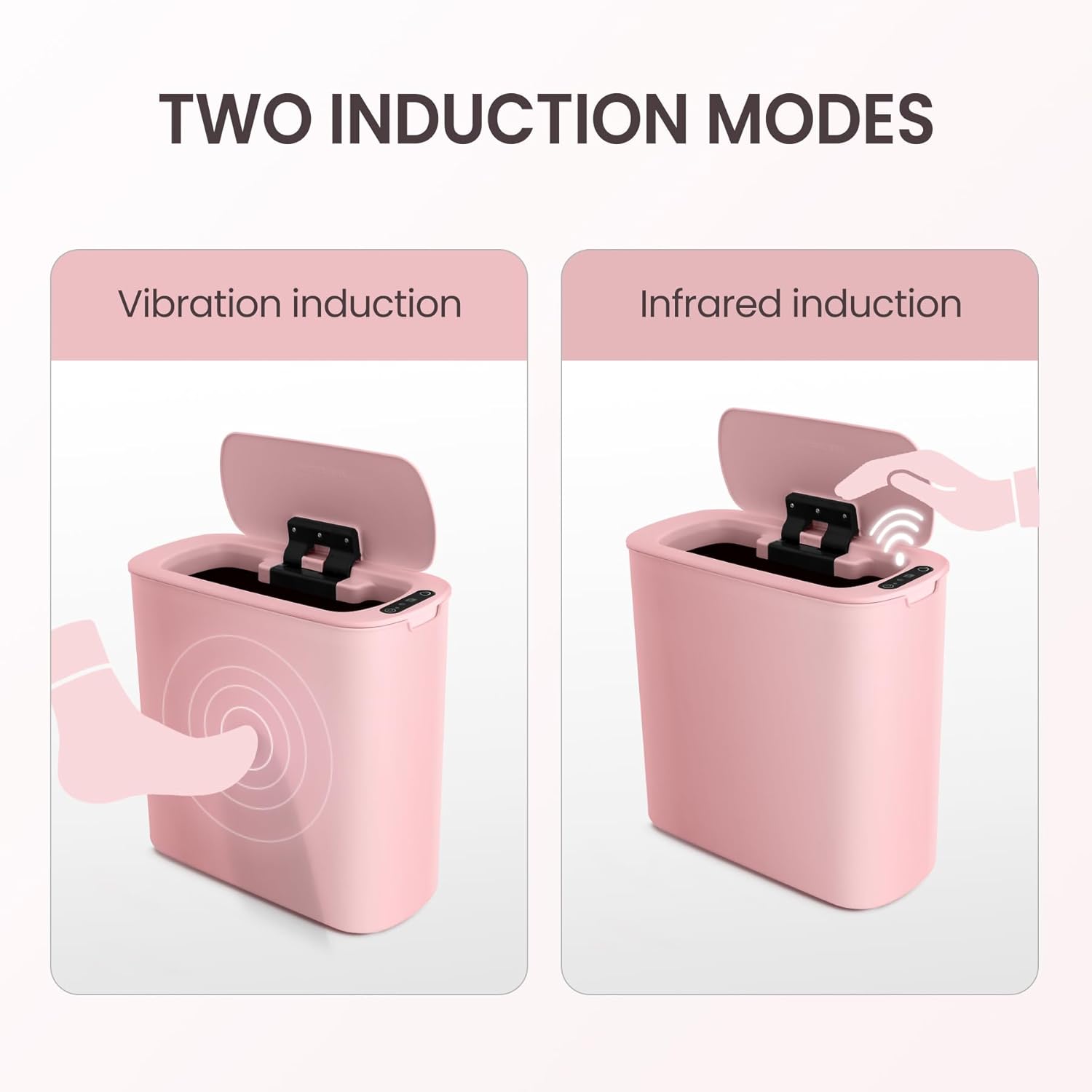 Cesun Automatic Motion Sensor Bathroom Trash Can with Lid, 2.6 Gallon Touchless Trash Bin, Smart Plastic Slim Garbage Can Small Wastebasket for Toilet, Office, rv, Bedroom, Living Room, Pink