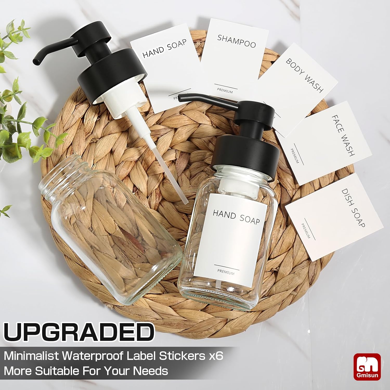- 【6pcs Waterproof Label Stickers】bathroom hand soap dispenser set comes with 6pcs of waterproof label stickers for you to choose from. The set contains shampoo, body wash, dish soap, face wash, and 2 hand soap labels to help you recognize and organize them well. The label stickers have waterproof coatings, which effectively keep water from touching the paper, and will not become wet or warp. It excellently suits for bathroom and kitchen sink that are prone to moisture.