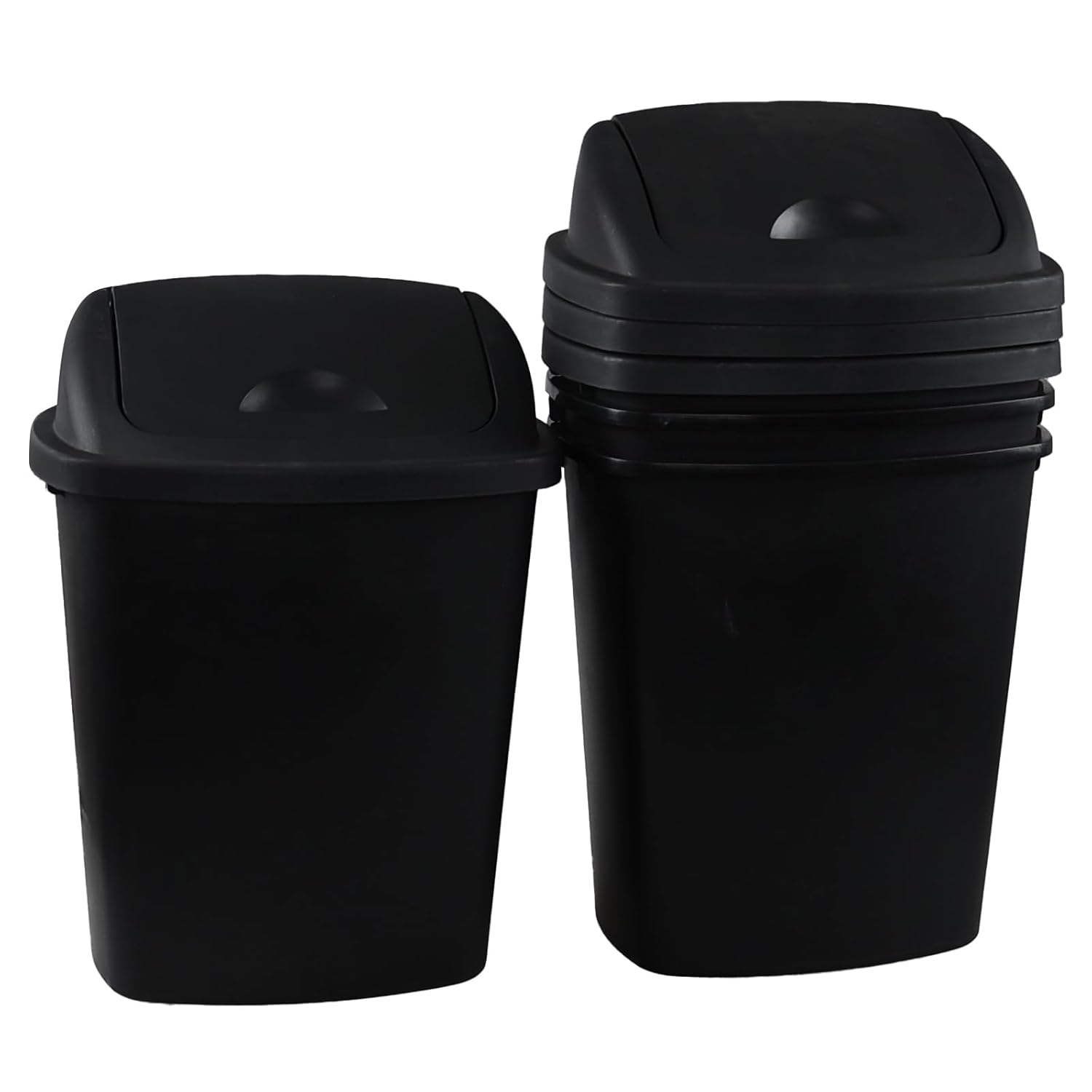 4 Pack 8 Gallon Medium Trash Can with Lid, Plastic Swing Top Garbage Can, Black Waste Bin Waste Basket for Bathroom, Kitchen, Bedroom, Office, College
