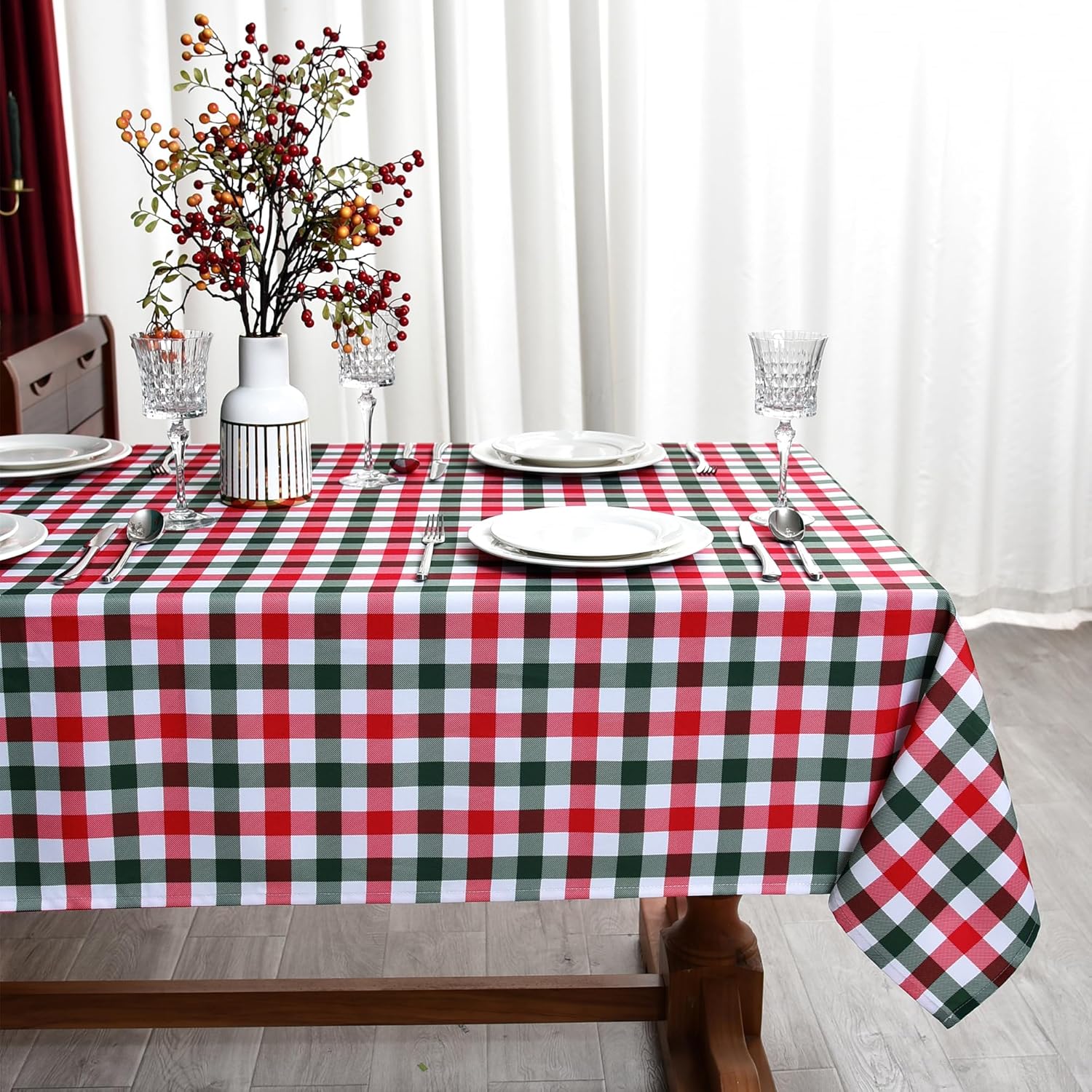 Classic Gingham Buffalo Xmas Tablecloth Fabric - Oblong 58x144 Inch Water Proof Checkered Table Cloth for Indoor Outdoor - Red Christmas Plaid Table Cover for Christmas, Holiday, New Year