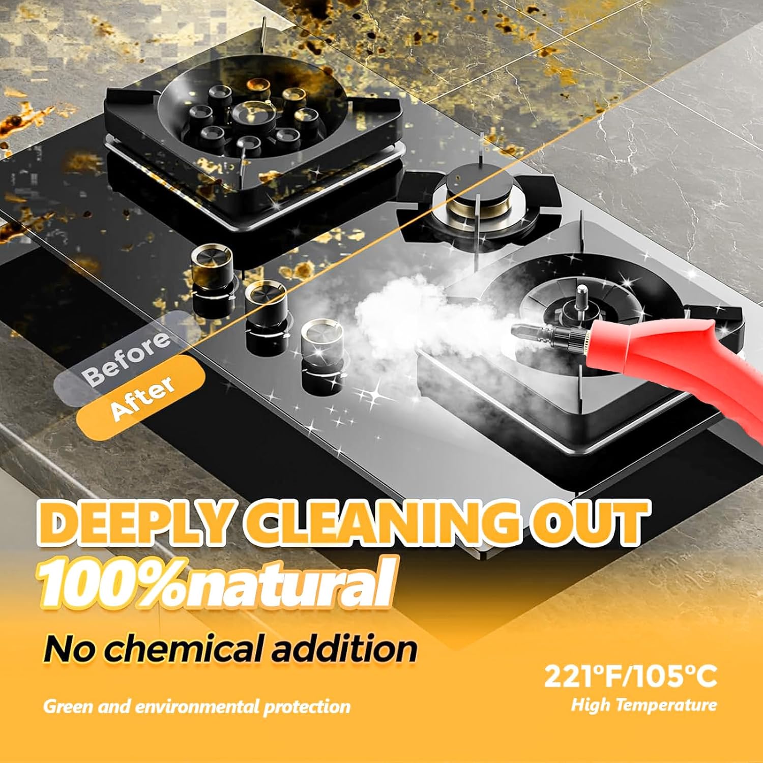 - Quick Heating Time: 1500W high power makes your steam cleaner will be ready in 15 seconds, spray strong steam to deeply clear out stubborn grease, dirt and stains for wide range of items and surfaces.