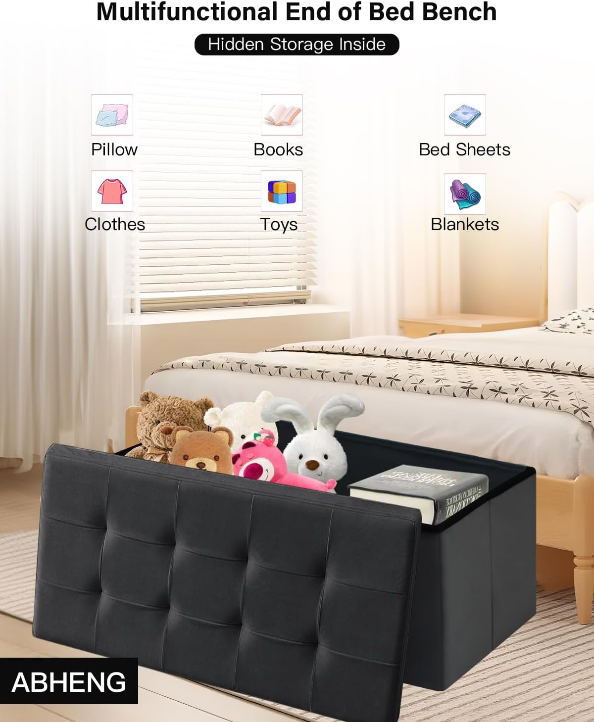 Folding Storage Ottoman, Velvet Storage Bench, Footrest, Removable Divider, for Living Room, Bedroom, 15 x 43 x 15 Inches, 660 lb Load Capacity, Ink Black UASND02B