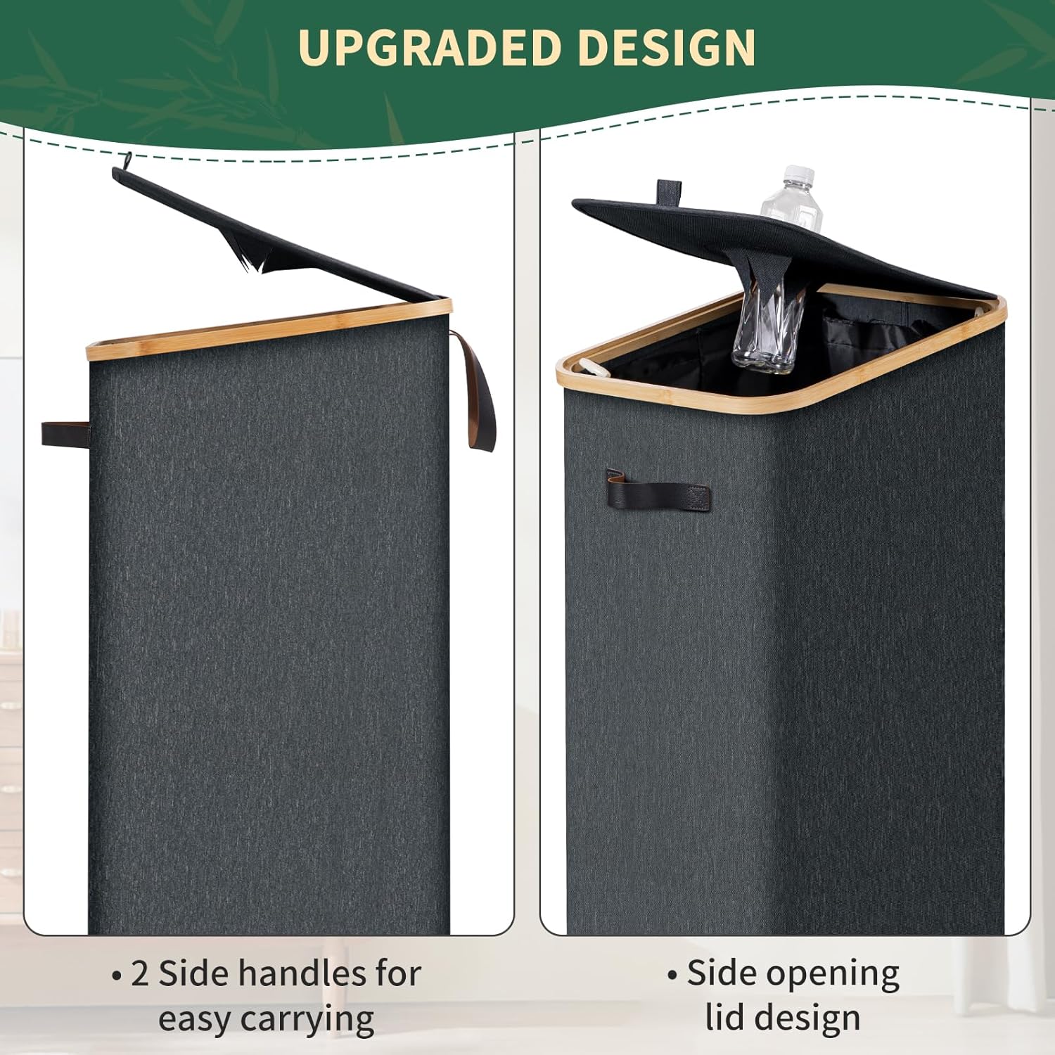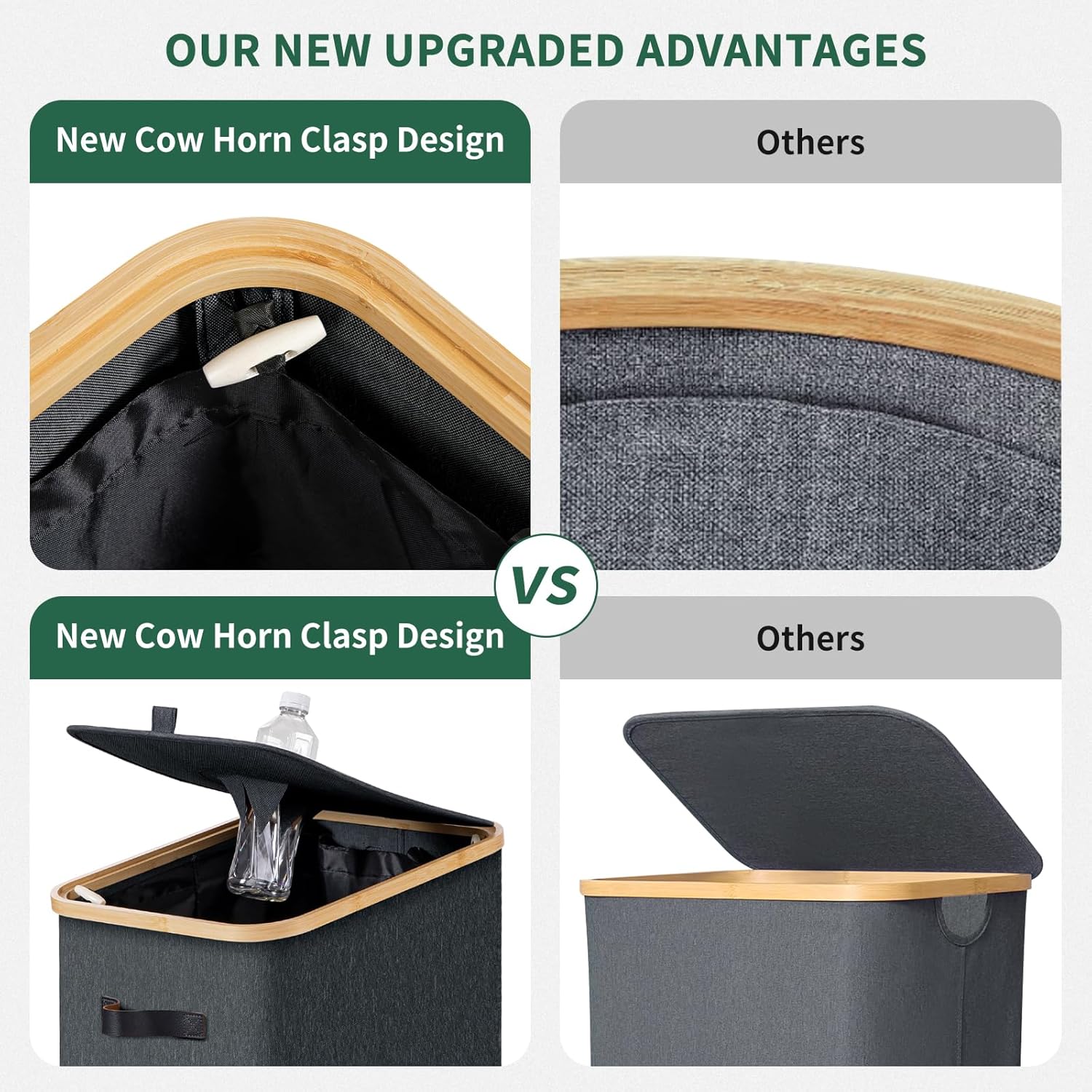 - PRACTICAL DESIGN - The bamboo frame and inner pockets ensure excellent stability of recycling bin with a strong carrying capacity. The high front and low back make it easy to place and hide empty wine bottles to create a unique backdrop for your home