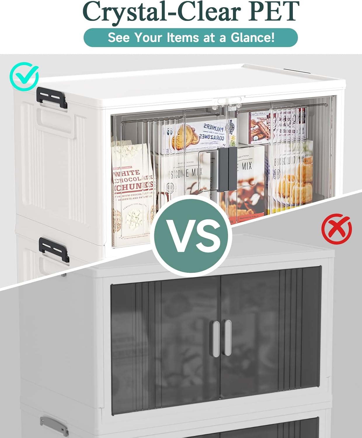 OlarHike 144QT Lockable Storage Bins with Lids - Folding Storage box with Doors and Wheels, Collapsible Plastic Storage Bins for Closets, Stackable Storage Organizer, Storage Containers, 3 Pack Cubes