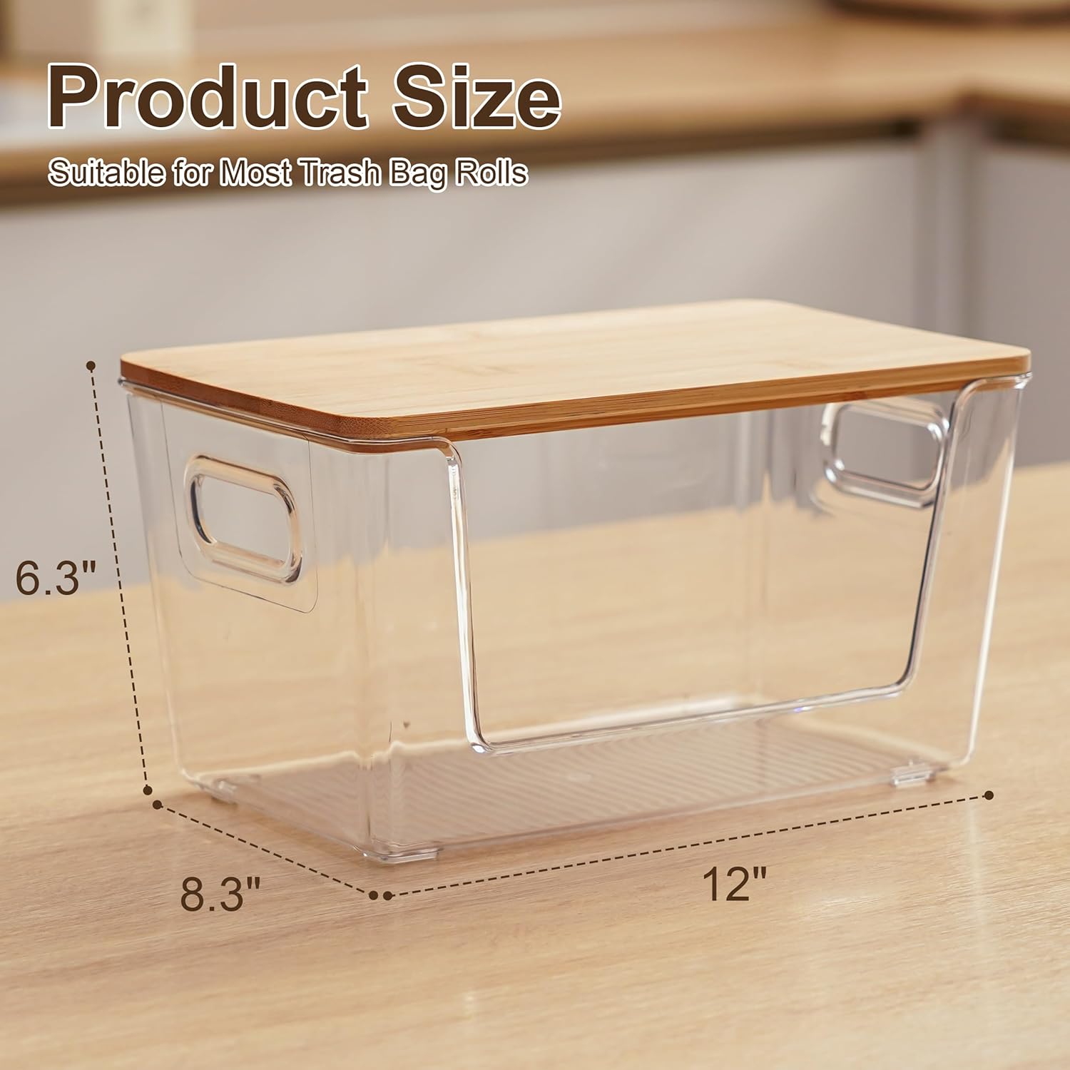 - High Quality Material: Our trash bag dispenser is made of thick clear plastic, making the whole box more durable and unbreakable; you can store items on top of the bamboo lid, which can hold up to 12kg.