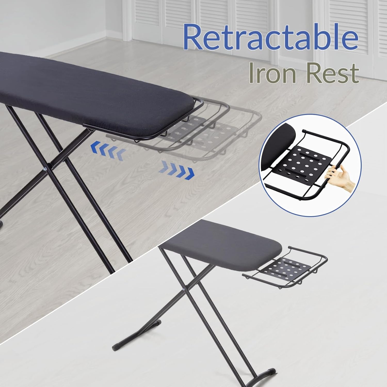 Ironing Board 48" x 15" with Retractable Iron Rest, RAINHOL Heavy Duty Full Size Iron Board, Sturdy Wide Frame with Thick Padding Cover, Height-Adjustable, Black