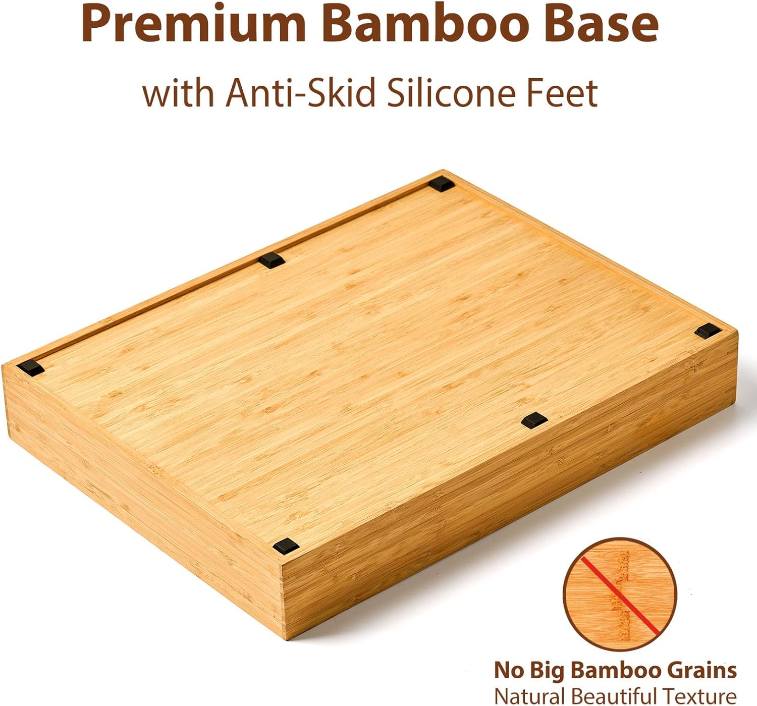 - 6 BIG ANTI-SKID SILICONE FEET: Premium silicone feet keep the bamboo trays immobile and quiet when pulling out and pushing back the drawer.