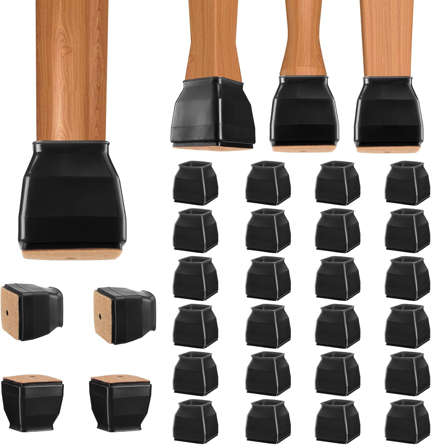 BALEINE 24 Pack Silicone Chair Leg Floor Protectors, Stool Leg Protectors Cap, Non-Slip Chair Leg Caps for Hardwood Floors (Black & Small (Square), 24 Pack)
