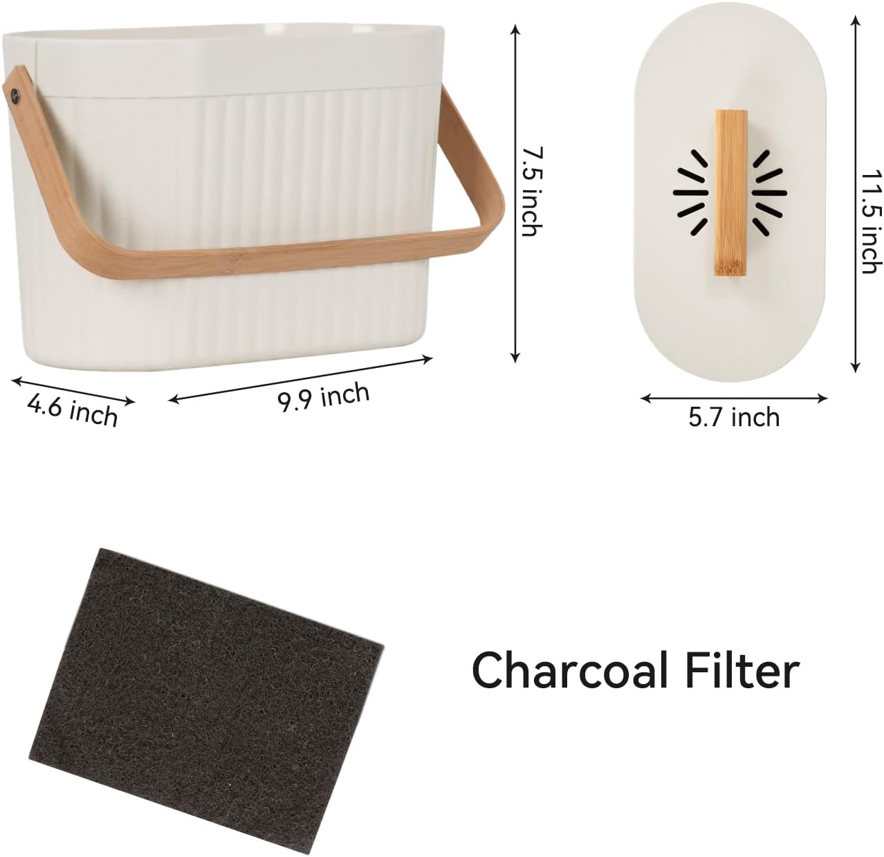 - 【COMPACT - IDEAL SIZE】Measuring 11.5 x 5.7 x 7.5 inch, the compost canister has perfect size to hold several days of food waste. It is suitable for placement on countertop, tabletop, under the sink, or in the pantry.
