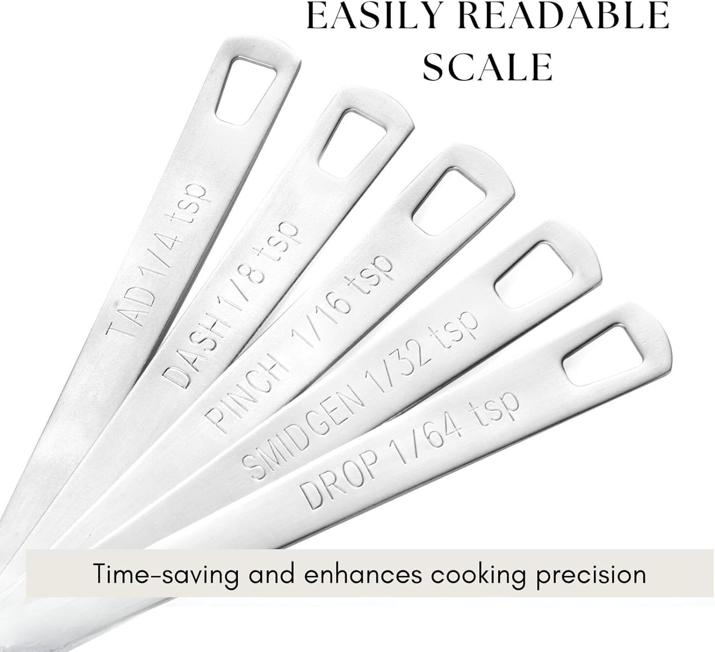 2 Pack Teaspoon Measuring Spoons, 1/4 tsp, 1/8 tsp, 1/16 tsp, 1/32 tsp, 1/64 tsp Mini Measuring Spoons Set, Stainless Steel Cooking Baking Tiny Measuring Spoon for Powders, Spices, Salt