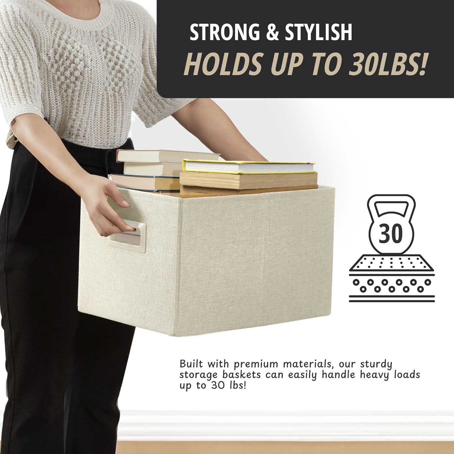 - Premium MDF Construction: Made from thick MDF fiberboard (engineered wood) that provides exceptional durability. Our storage bins for closet are weight-bearing, moisture resistant, and can hold up to 30 lbs without warping or sagging even when stuffed.