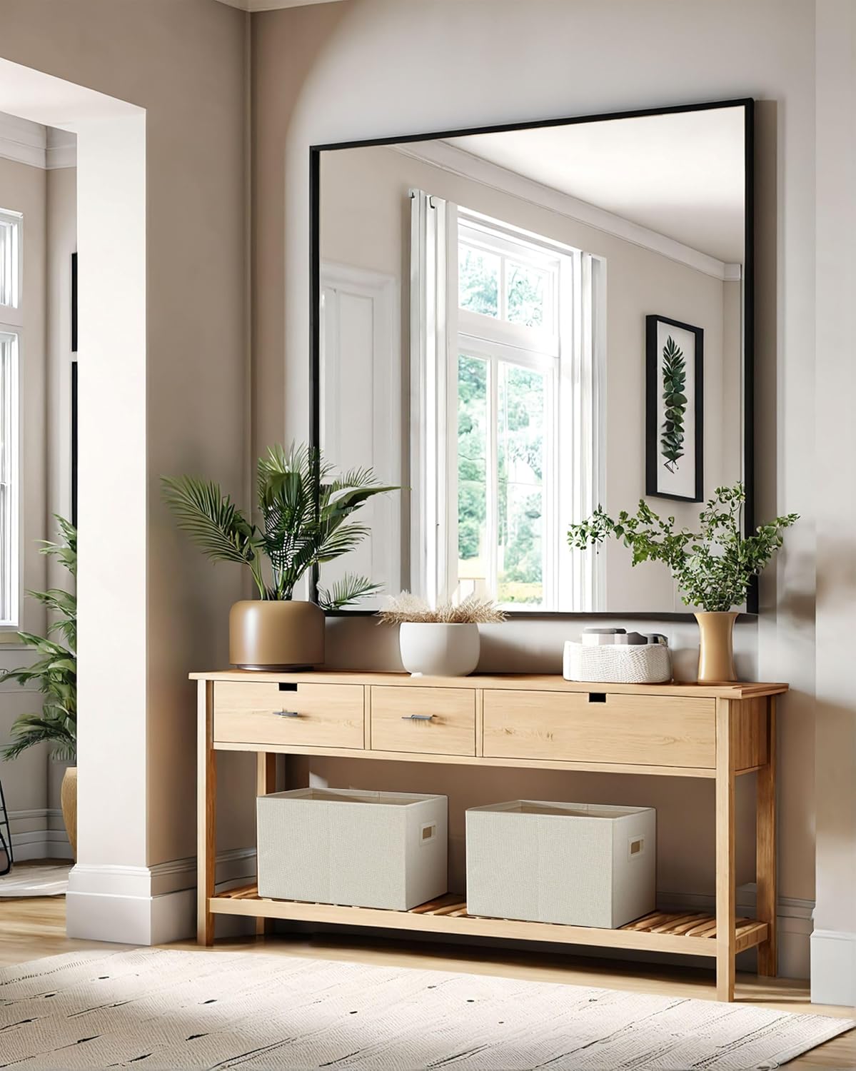 - Elegant Design: Crafted with a beautiful faux linen exterior and sleek cut-out handles for a clean, modern look. Stylish and practical large storage baskets for any home décor.