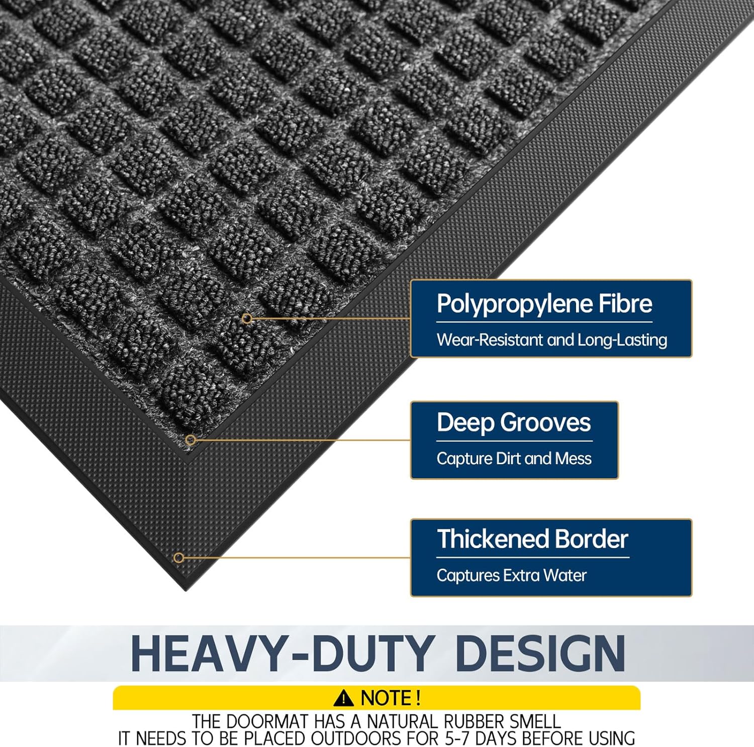 - LARGE DOORMAT VERSATILITY: Heavy duty doormats are perfect for high traffic areas such as entrances, outdoor patios, garages, gardens, laundries, or any outdoor space, and can also be used as a commercial doormat to keep floors clean in public places