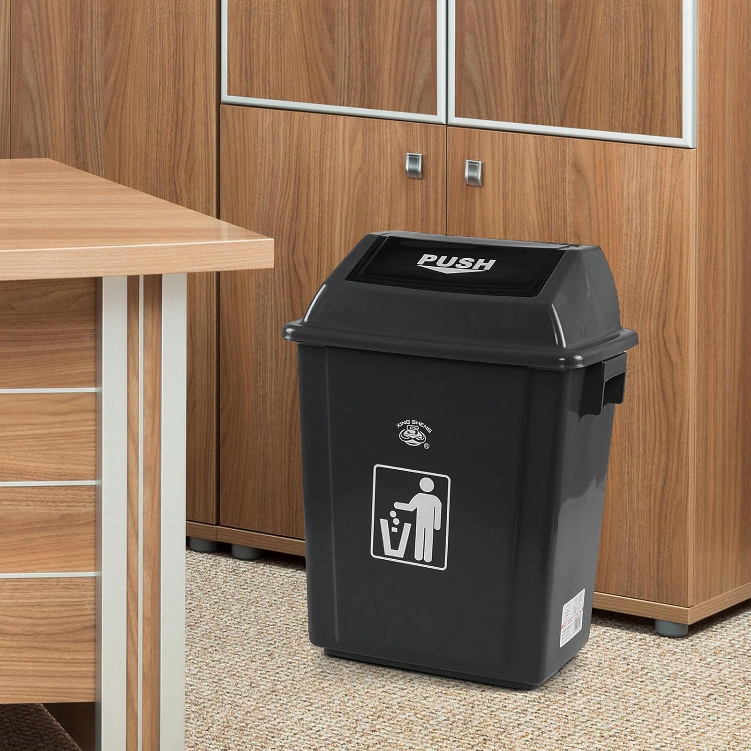 - Our trash can is equipped with swing lid that can be gently turn off after throwing garbage away, reducing the spread of garbage odors and germs