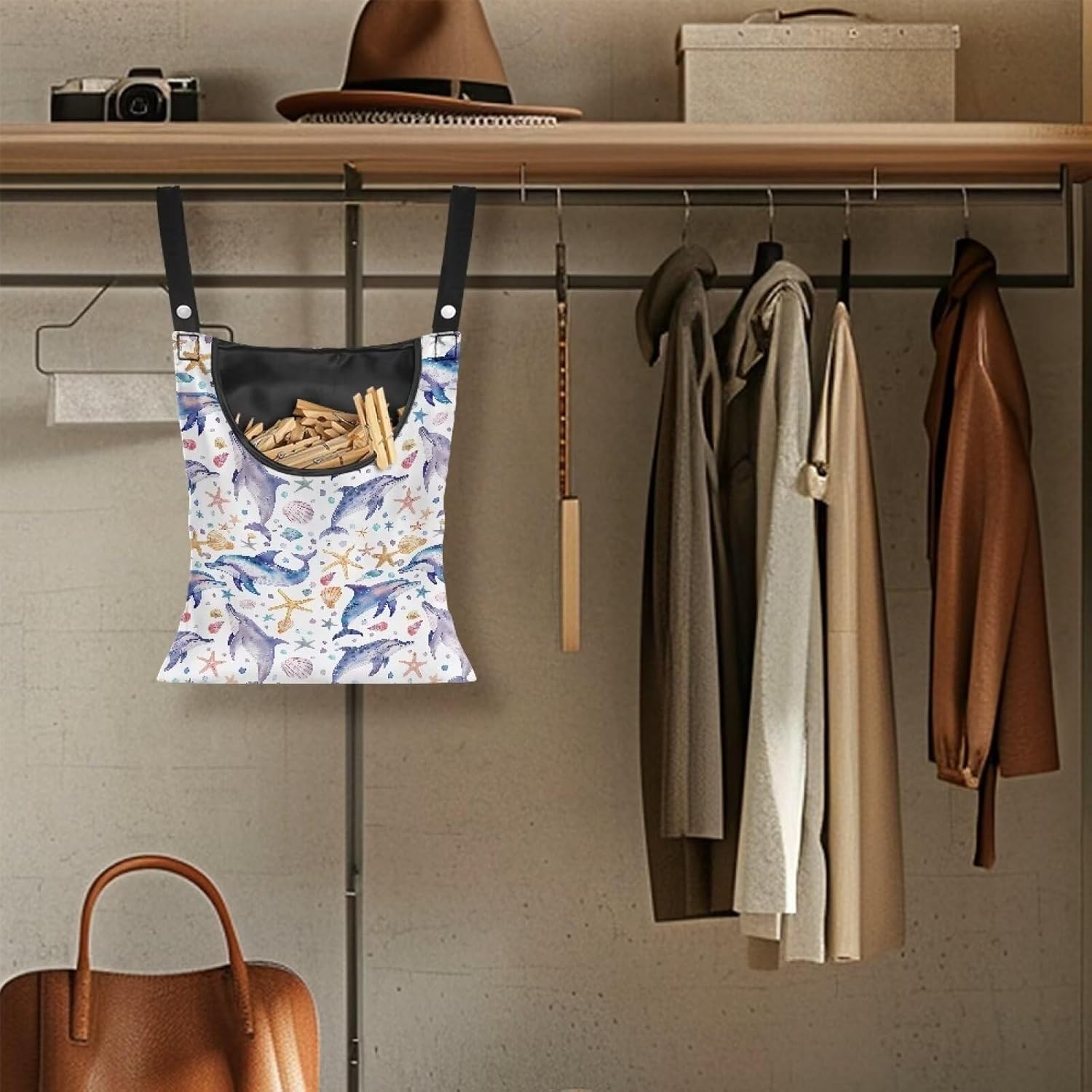 Cute Dophin Clothespin Bag Clothespin Storage with Hanger Hook Canvas Clothespin Bag with Large Opening Space-Saving Clothespin Holder Clothespin Bag for Outdoor Use, 1 Pack, CZB94