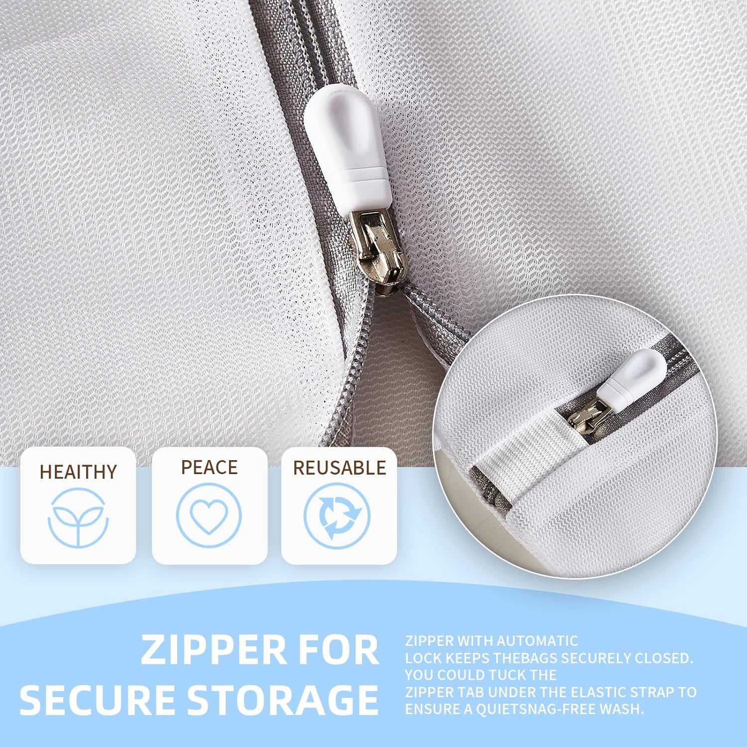 - Design: Our high quality rust-proof zippers have a ribbon hanger tag above them for easy hanging, and the zipper comes with an automatic lock and smart zipper protection to prevent the bag from opening during washing and drying cycles. You will have a quiet laundry experience.