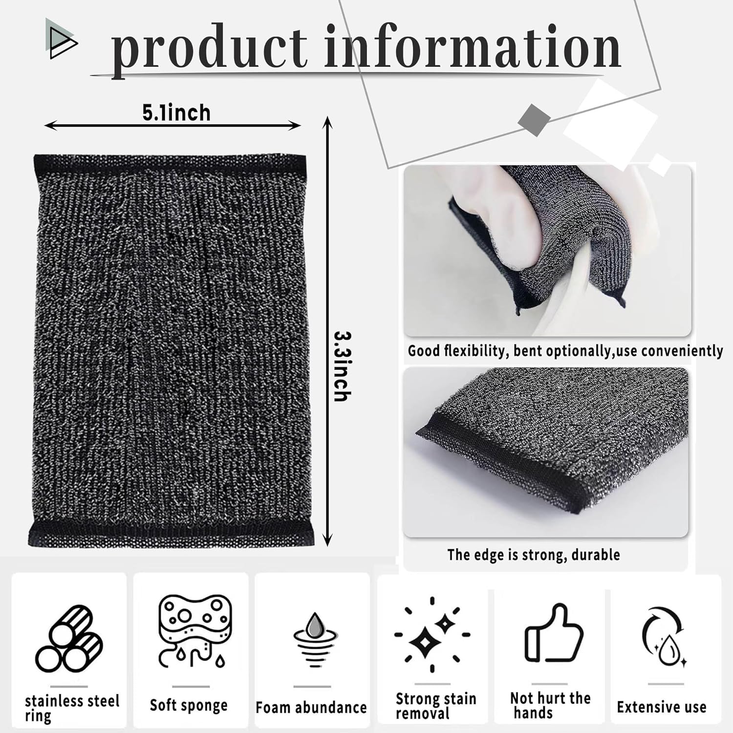 - More hygienic: The steel wool sponges will not drop wadding, will not stick food scraps, will not smell. You just wring it out to dry after use, It is very suitable for placing in the kitchen or sink without taking up a lot of space.