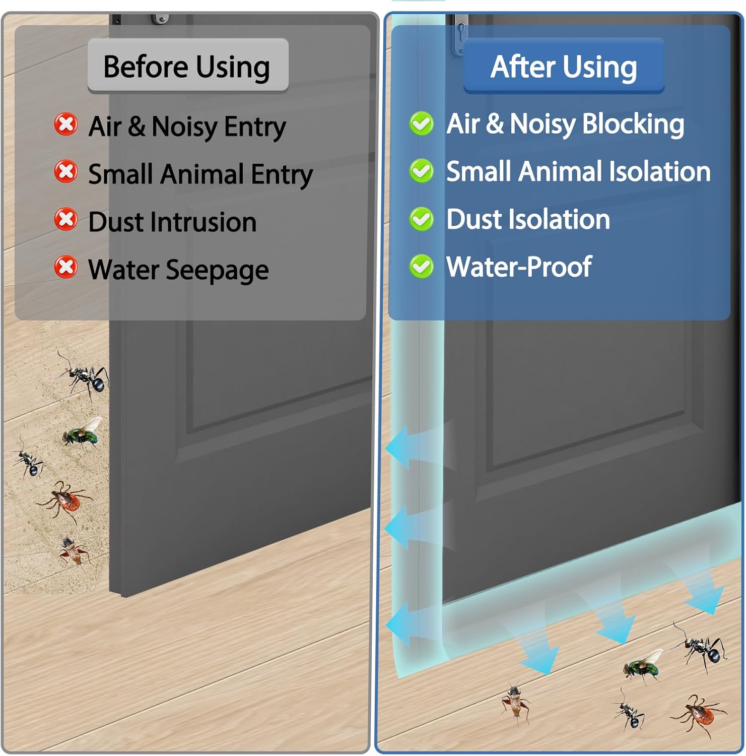 - Wide Applications: Suitable for homes, apartments, offices, garages, and even RVs. These door bottom seal strips create a tighter seal around or under your doors. They're ideal for reducing noise levels while enhancing protection to create a more comfortable living or working environment.