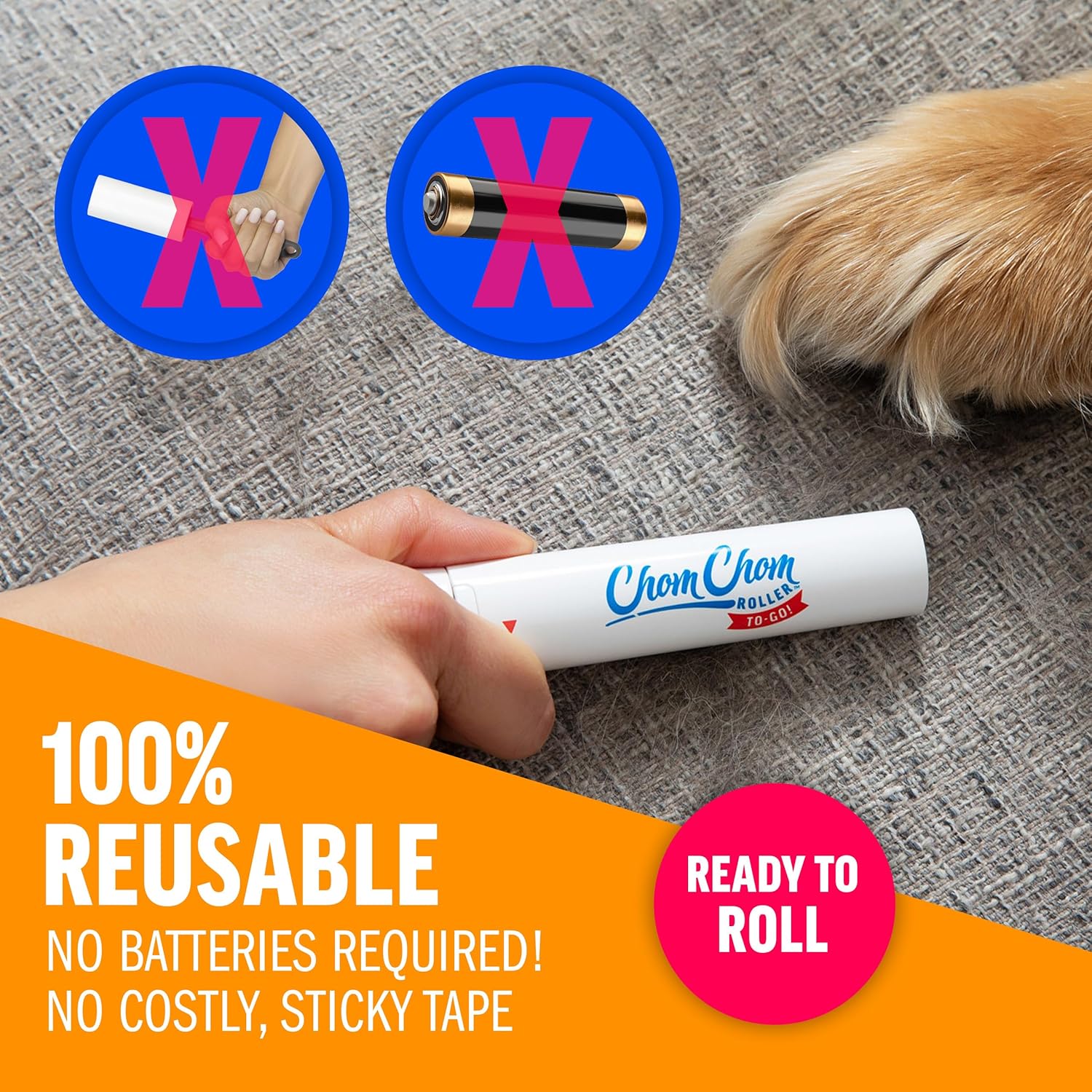 - CHOMCHOM TO THE RESCUE From the makers or the World's Best Pet Hair Remover comes the Mini ChomChom - the perfect reusable lint roller for clothes!