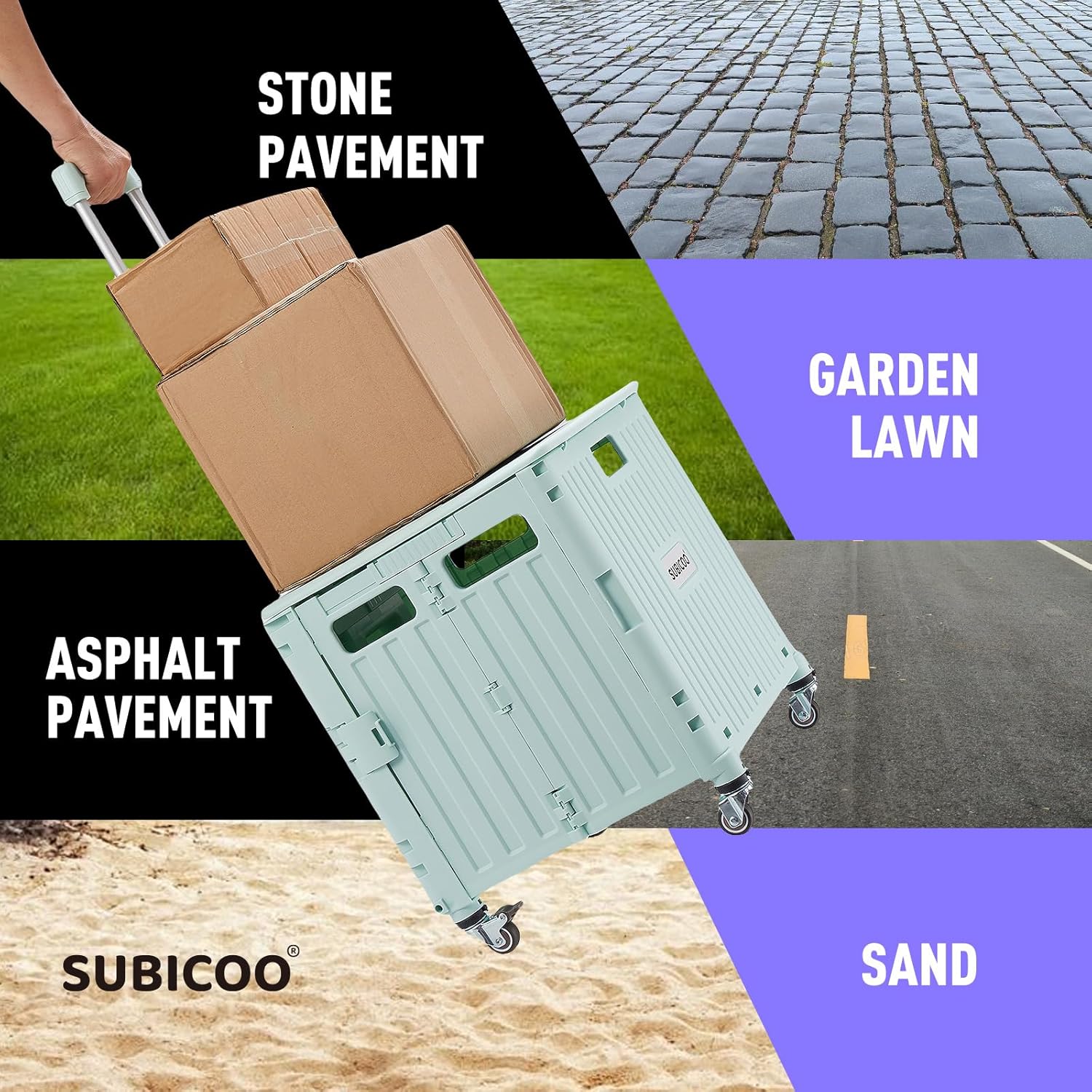 - 【Box Appearance, Aesthetic and Practical】: This durable multifunctional hand truck box has a maximum load capacity of 110 pounds. The extendable handle and detachable cover allow you to transport various items such as books, documents, office supplies, groceries, laundry, or personal belongings. It's suitable for various occasions like travel, shopping, or moving.