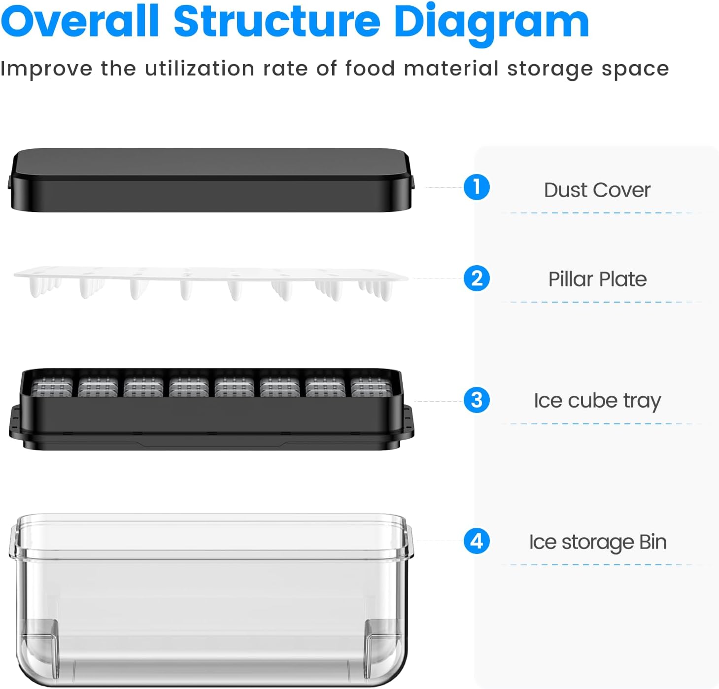 - Food Grade Material & BPA Free:This ice trays for freezer with lid and bin are made of food grade PP material, which is safe and can be frozen and used repeatedly for a long time.The ice cube tray is NOT DISHWASHER SAFE