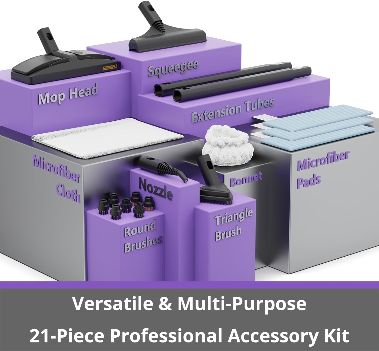 Steam Cleaner: 1650W, Fast 50-Sec Heat-Up-21-Piece Kit Refill Anytime-No Cooling-Detachable Hose Steamer Mop for Home Use Car Bed Furniture Bathroom Tile Grout Floor Cleaning And More White