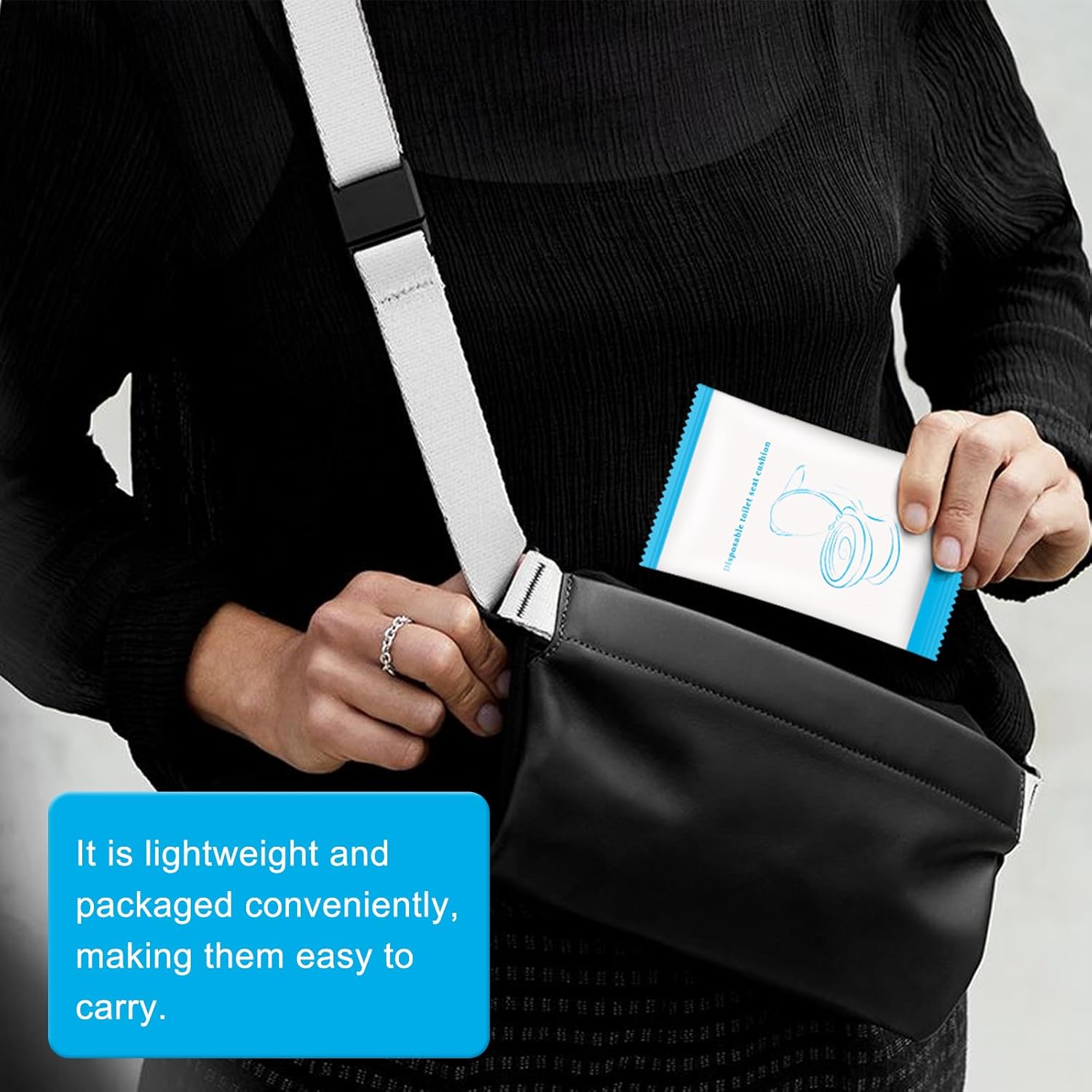 - Easy to Use: Simply place the cover on the toilet seat and discard it after use, offering a convenient and time-saving solution.Suitable for most toilet shapes, such as O-shaped, U-shaped, and square.