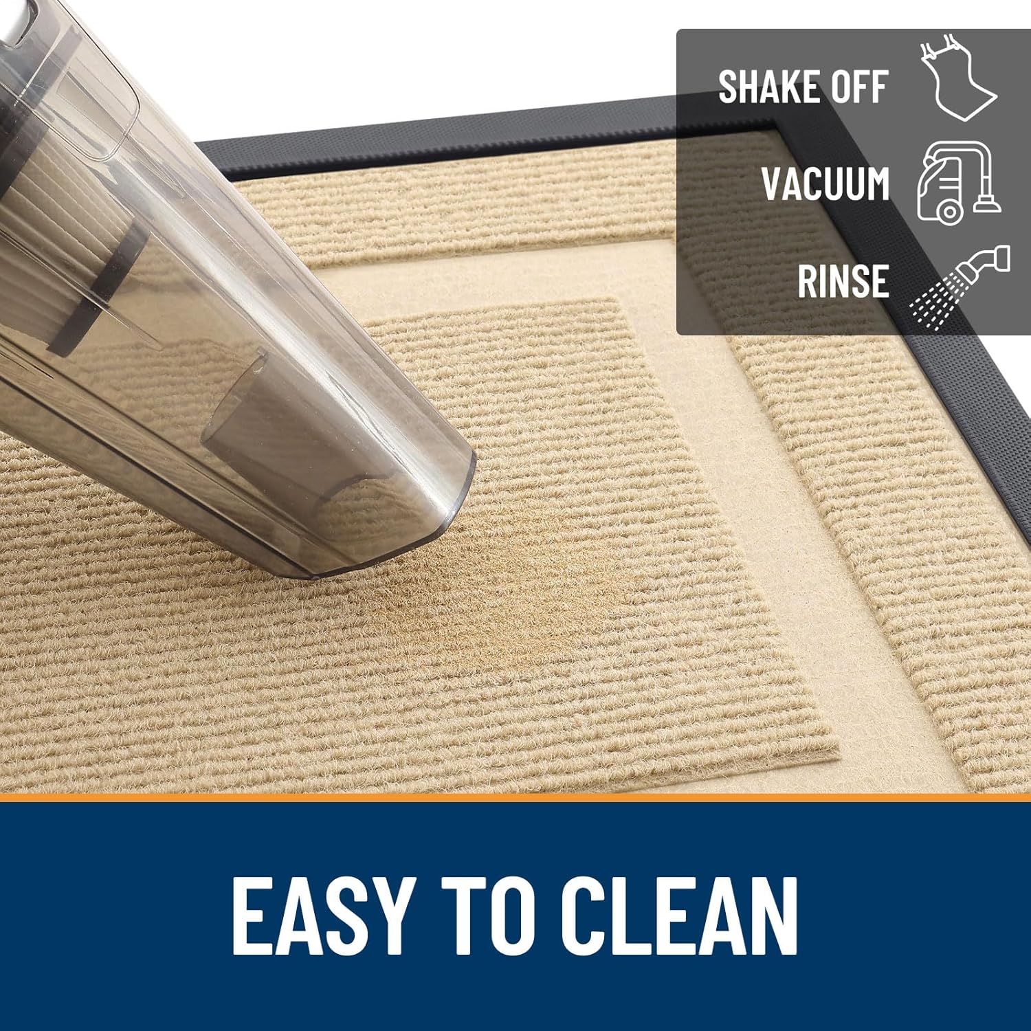 - [EASY TO CLEAN] The OLANLY front door mat is designed for quick and effective cleaning using a vacuum or traditional broom cleaning methods. Additionally, tapping and shaking the back of the doormat helps remove residual debris. For a deeper clean, rinse it with a garden hose and hang the mat in a ventilated place or dry it in a dryer. This versatile cleaning method ensures that your doormat stays clean and tidy, ready to welcome guests.