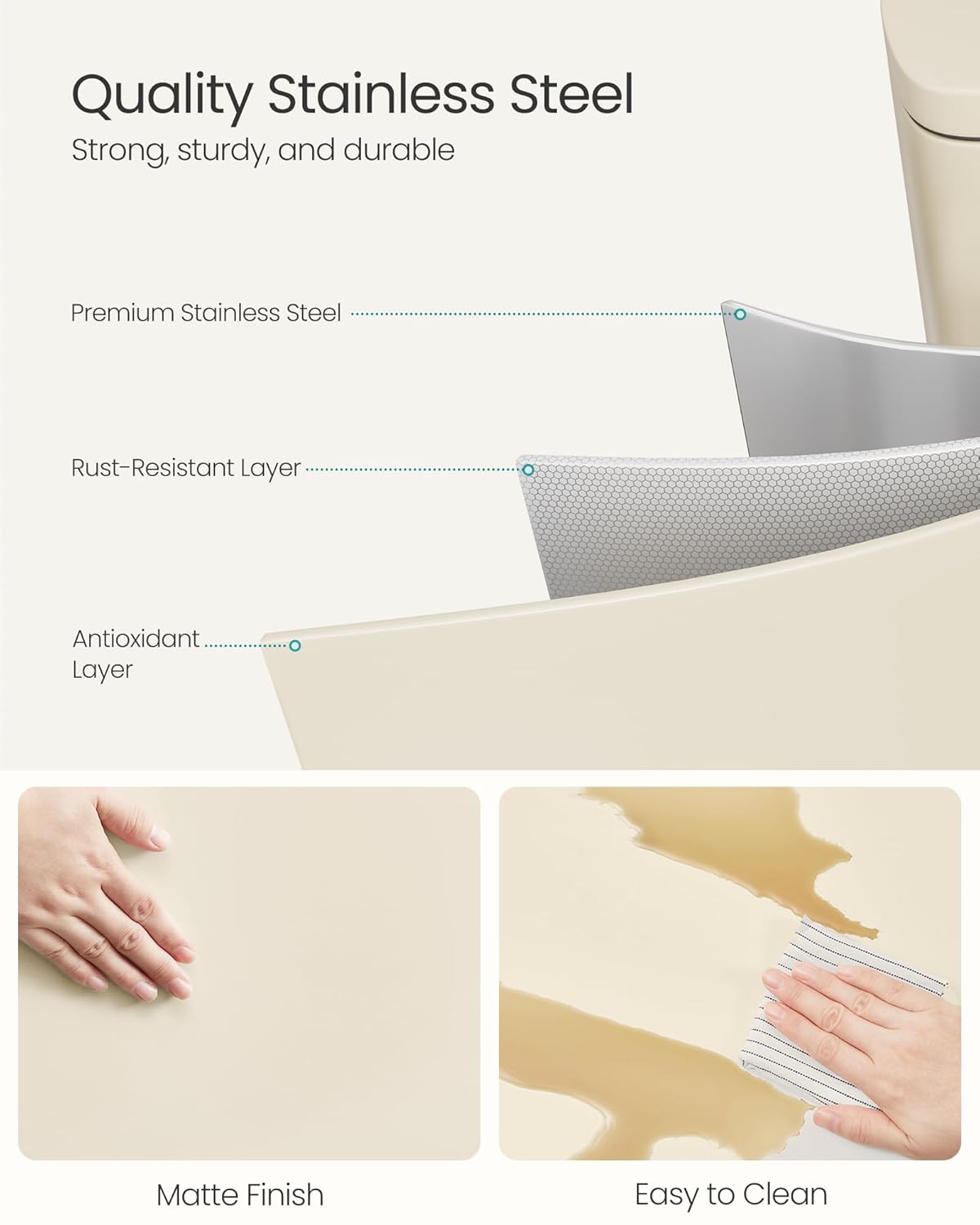 - [Stainless Steel] The recycle bin made of stainless steel resists rust; a simple wipe can keep it clean and smudge-free