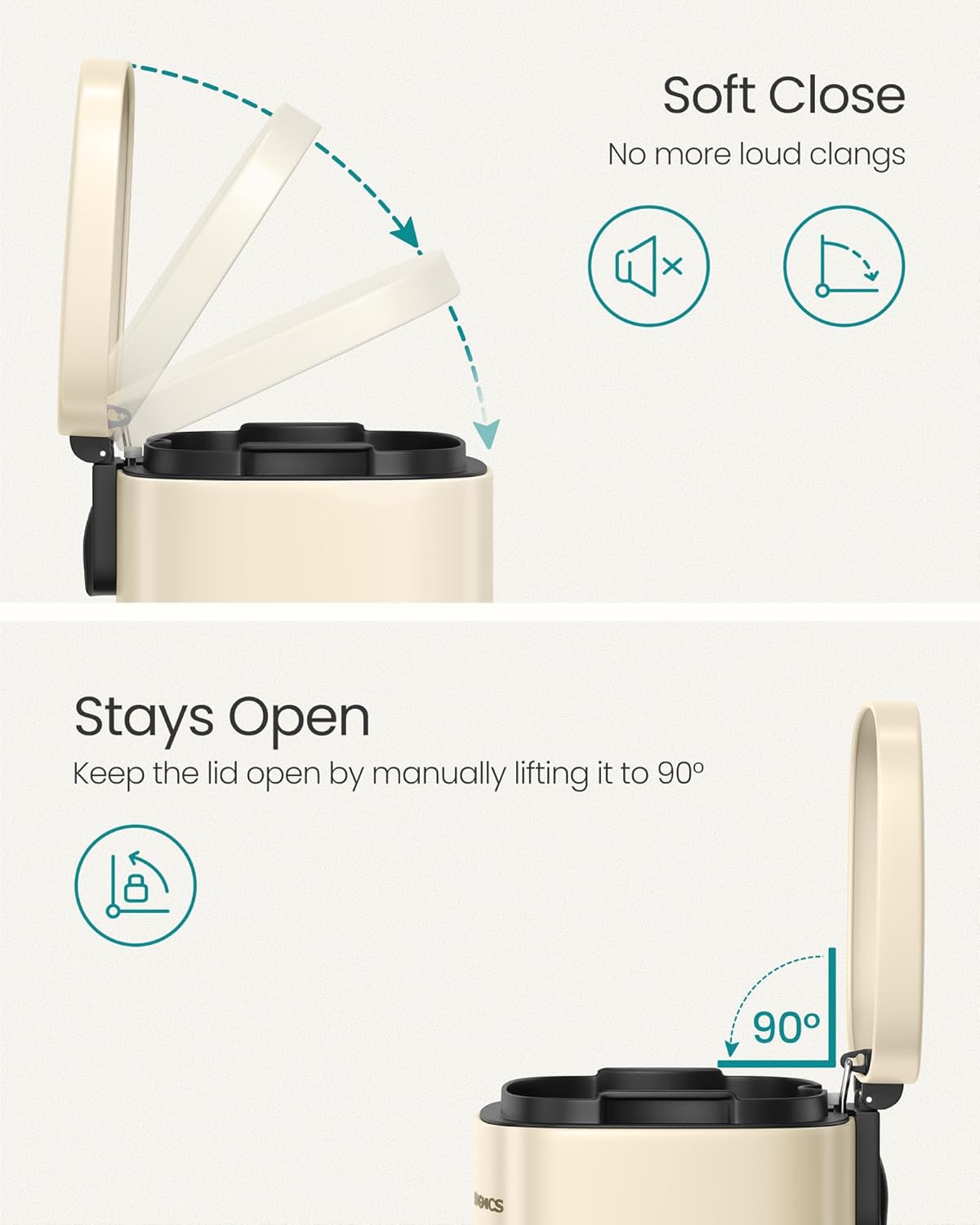 - [Soft Closure] The lid of the garbage can closes slowly, softly, and silently without making a loud clang