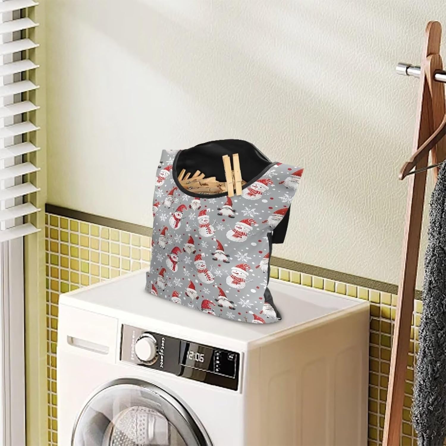 Cute Snowman Large Capacity 14.5 x 12 Inch Clothespin Bag with Hanging Hook Waterproof Clothes Pin Hanging Bag Clothespin Storage Organizer with Large Opening