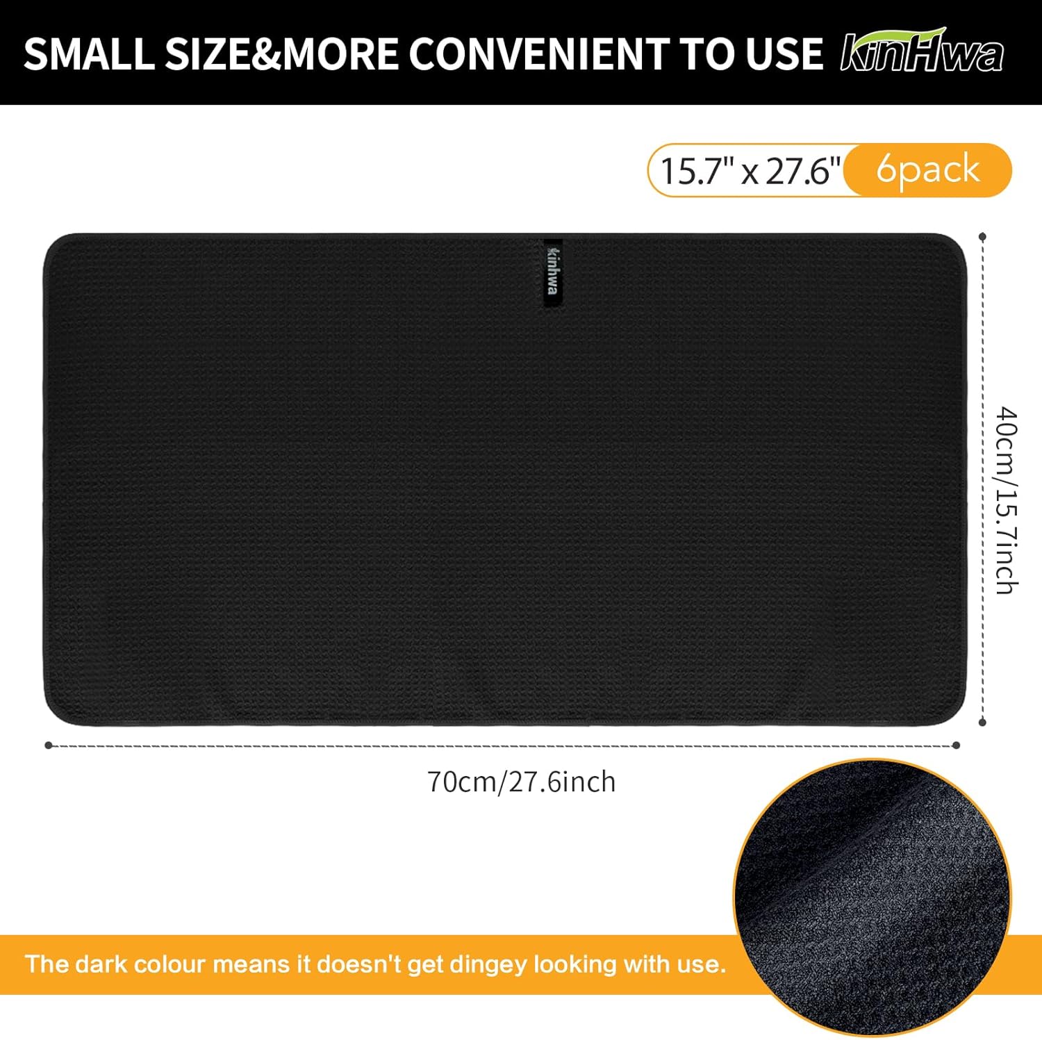 KinHwa Kitchen Washcloths for Dishes Absorbent Microfiber Dish Cloths Quick Dry Dish Rags with Poly Scour Scrub Side Ideal for Kitchen Cleaning (Black-T, 15inchx27inch 6 Pack)