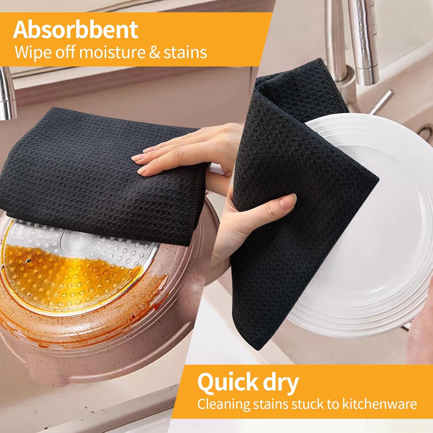 - VERSATILE DISH TOWELS: You can pretty much use them on anything in the kitchen - stove, microwave, granite countertops, sink, and even the dining room table, especially for heavy duty kitchen cleaning