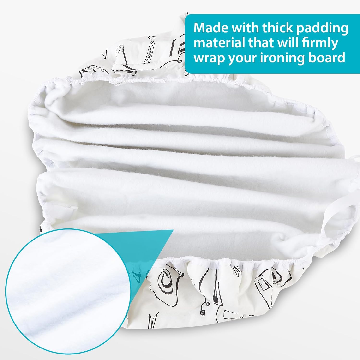 - SUITABLE FOR STANDARD IRONING BOARD: This ironing board cover designed for standard board to 54 x 18 inches. Suitable for standard size ironing boards with a width of 16 inches to 18 inches and a length of 52 inches to 54 inches. Note: Ironing board is NOT included