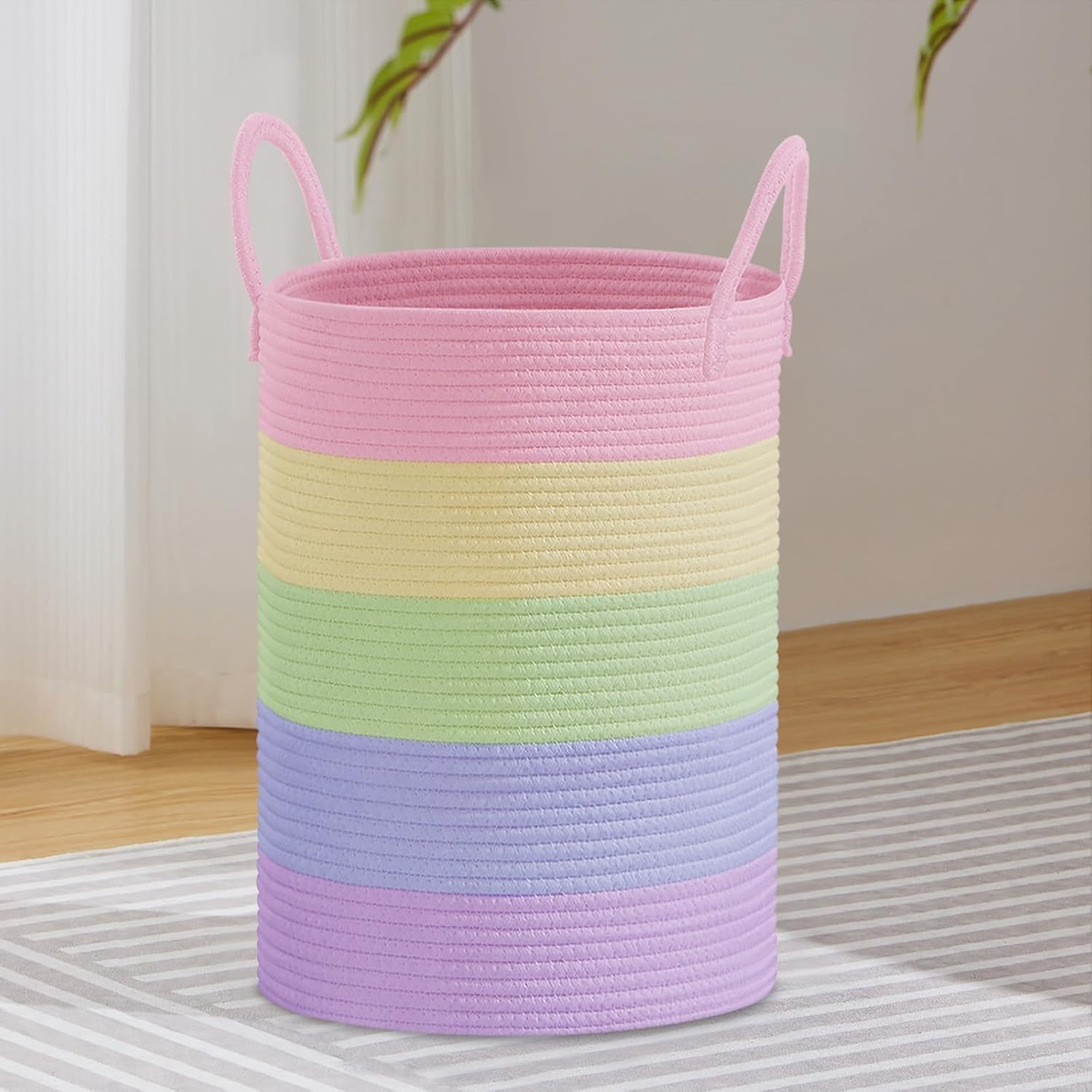 VIPOSCO Large Laundry Hamper, Tall Woven Rope Storage Basket for Blanket, Toys, Dirty Clothes in Living Room, Bathroom, Bedroom - 72L Rainbow
