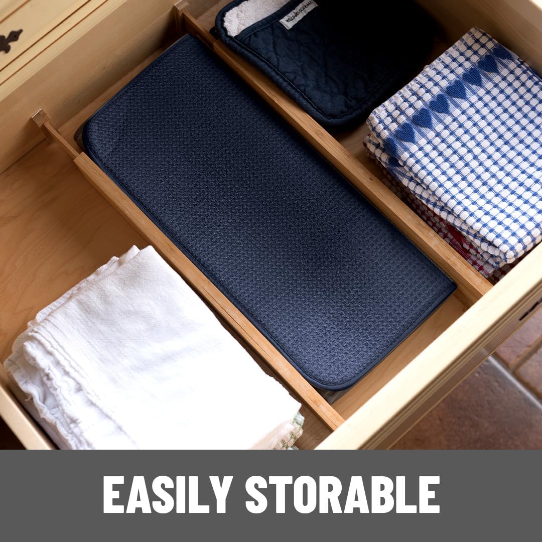 Bellemain XXL Dish Mat Microfiber Dish Drying Mat, Super absorbent (16" x 18", Navy)