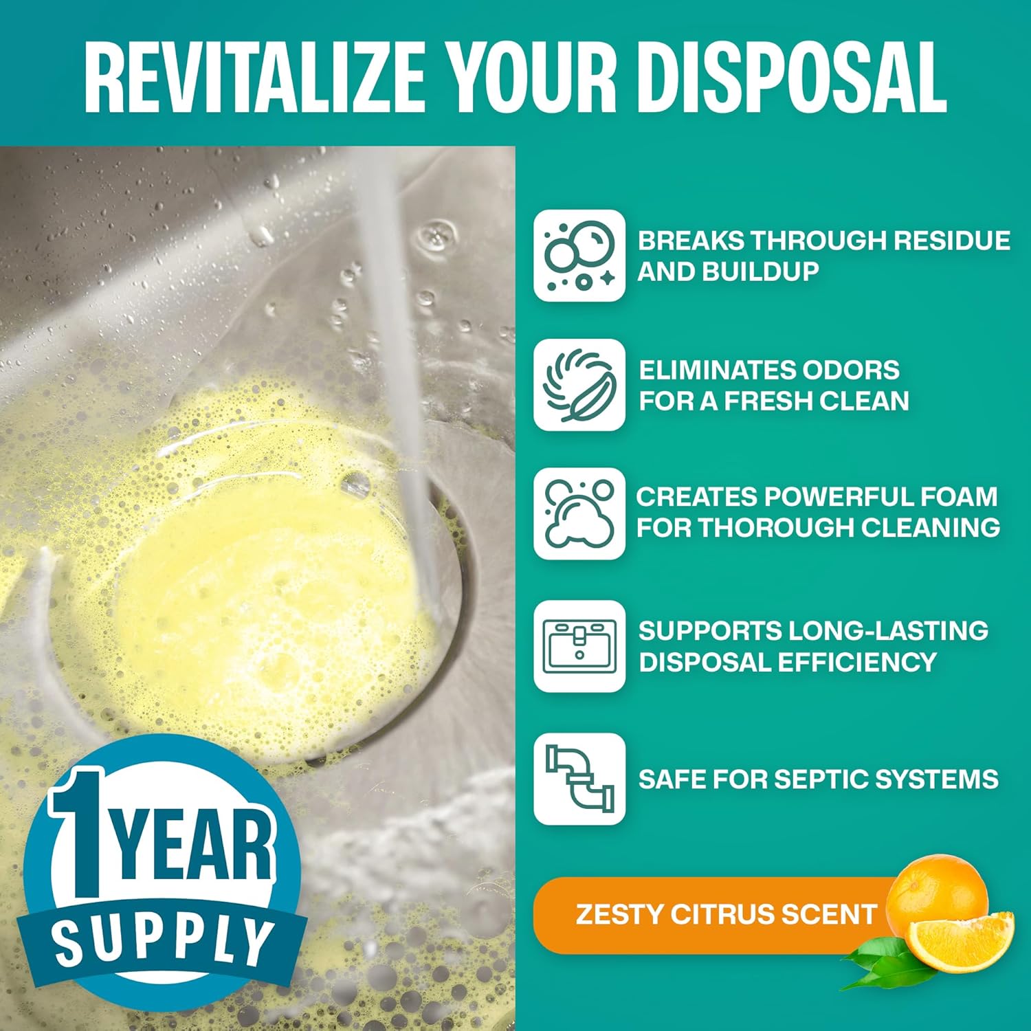 - Long-Lasting: Includes 24 powerful garbage disposal cleaner tablets, good for one year supply. Perfect for maintaining a clean and odor-free kitchen.