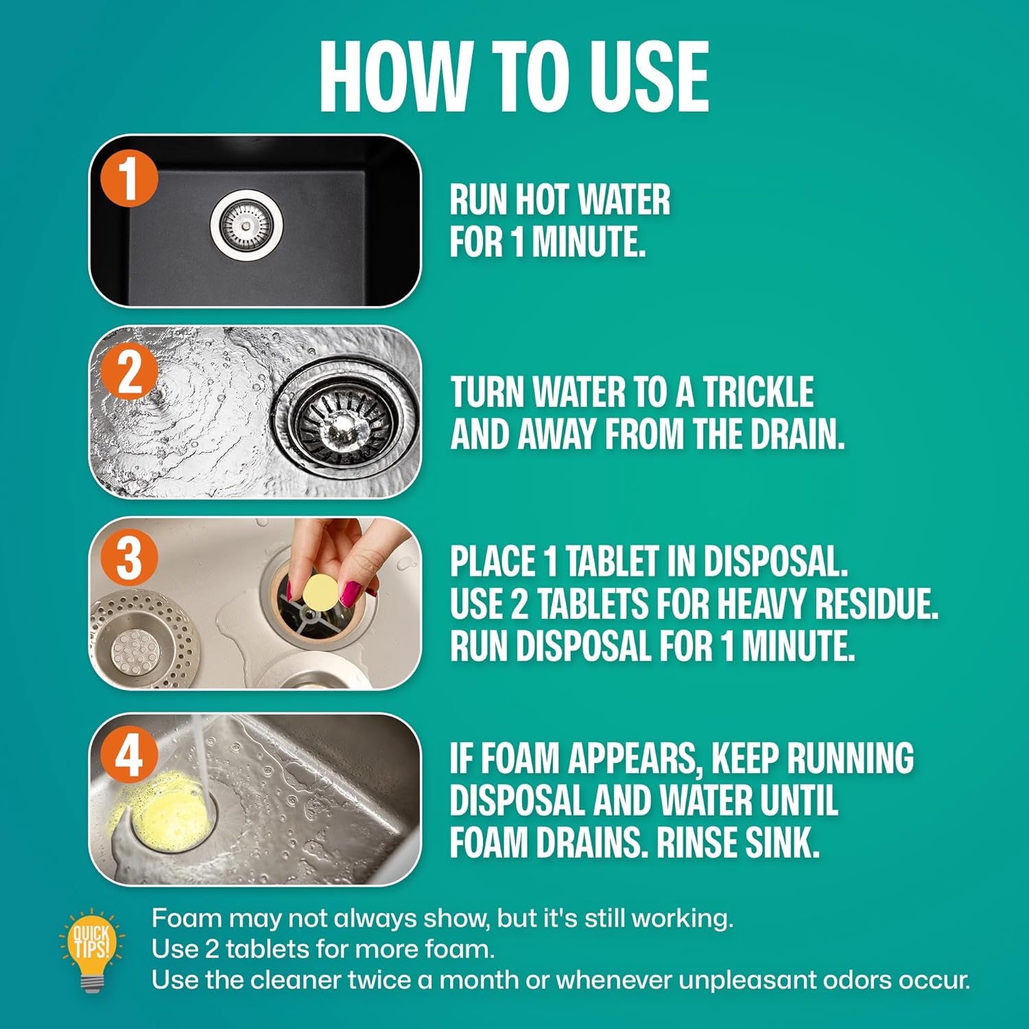 - Easy to Use: Simple drop the tablet into the disposal for quick and effective cleaning. Perfect as garbage cleaner pods alternatives and ideal for kitchen sink deodorizer for smell and odors.