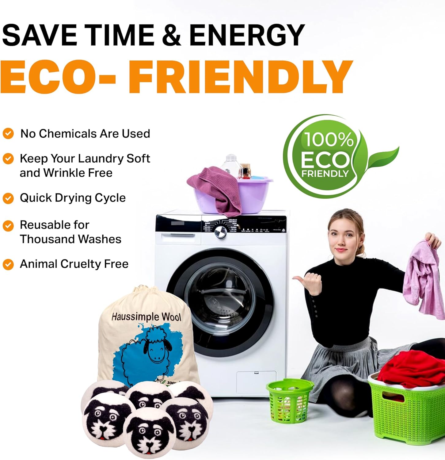 - Eco-Friendly and Reusable: Wool dryer balls are reusable, lasting for hundreds of loads. Unlike single-use dryer sheets, they generate less waste and are a more sustainable choice.