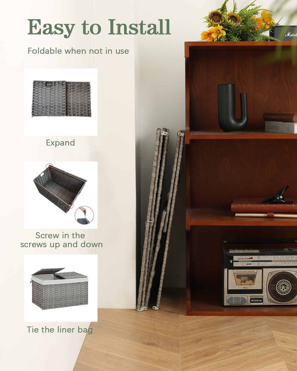 - Easy to Assemble: Wicker hamper with lid is made of PE rattan, basket with lid decorative storage is easy to assemble, if you decide to stop using woven basket with lid you can fold rattan basket with lid up for storing woven hamper more compactly.