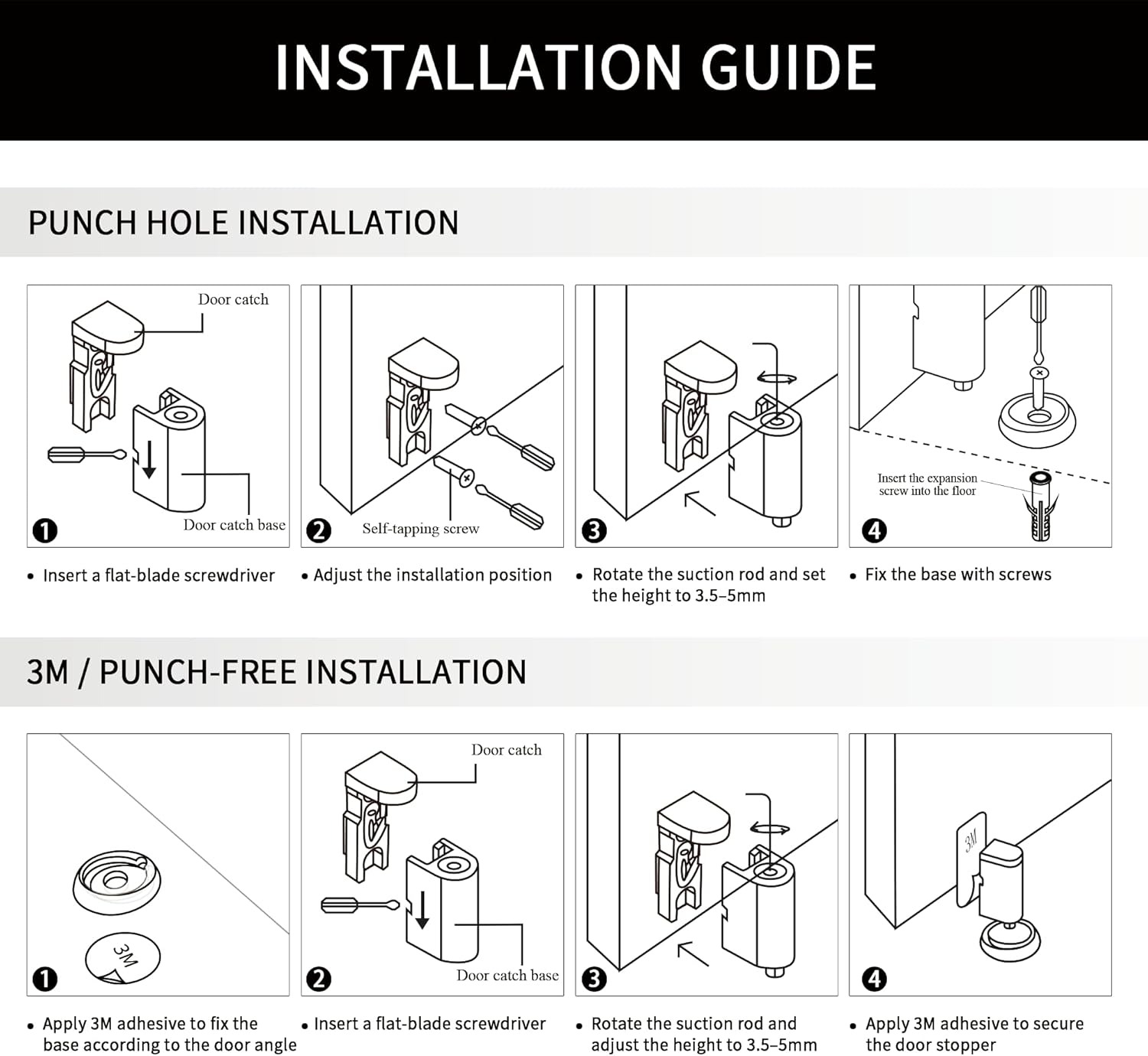 - Versatile Installation: Includes both no-drill 3M adhesive and screw options; ensures stable and secure attachment for various door types