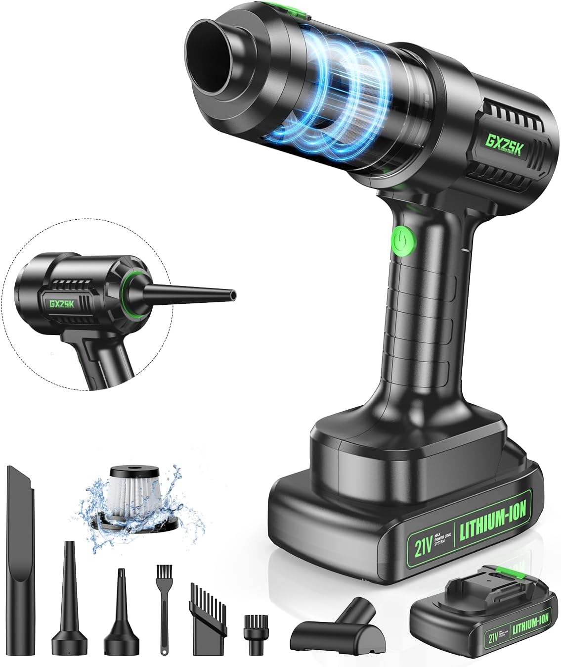 - 🌈【2-IN-1 Car Vacuum Cleaner】The hand held vacuum cleaner with multiple working modes (suction, blowing, inflation) and includes 6 attachments for various cleaning tasks. The floor brush and nozzle brush easily remove dirt and debris, while the blowing nozzle clears dust from tight spaces like keyboards. The quick inflation function is perfect for items like swimming rings, enhancing family fun and outdoor activities. This flexible and cordless vacuum cleaner is a must-have for your daily routine