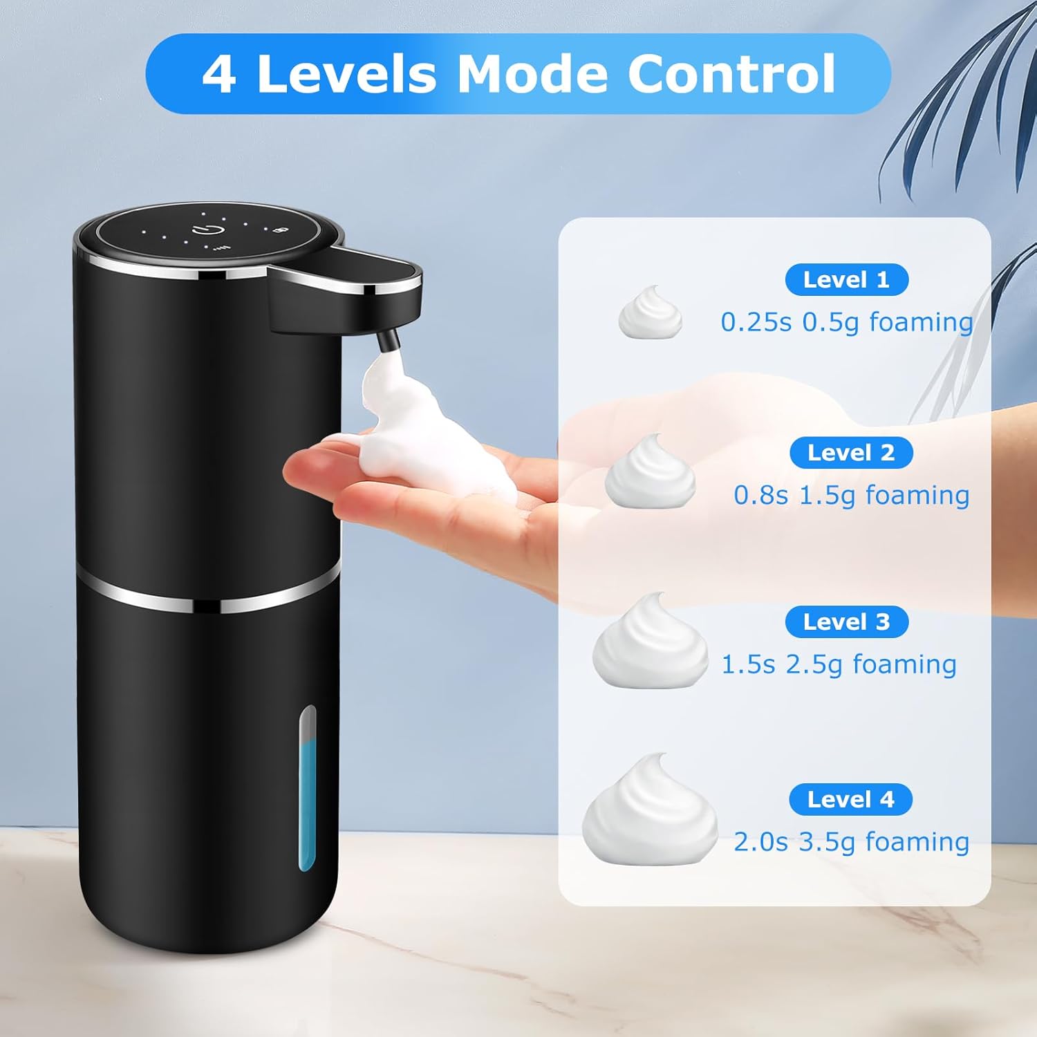 - Automatic and non-contact:The automatic foam soap dispenser can ensure non-contact operation and provide a hygienic and worry free experience.Just put your hand under the dispenser and it will automatically dispense a proper amount of foam soap each time.And there are 4 different gears to adjust to meet your different needs.