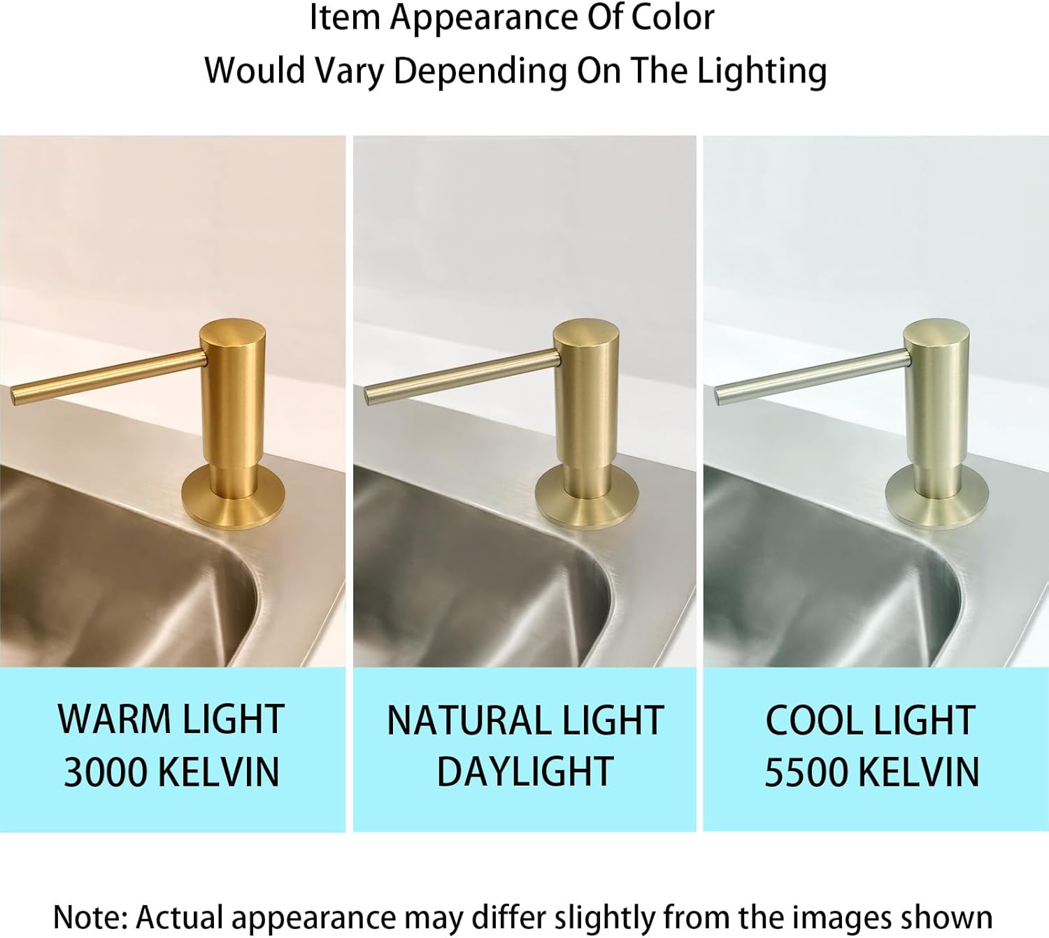 - Note on Finishes: Due to the reflective nature of metallic surfaces, the appearance of brushed gold may vary slightly under different lighting conditions. Natural or artificial light, as well as the hues of surrounding objects, can influence the final aesthetic in your space. Actual appearance when installed in the home environment may differ slightly from the images shown.
