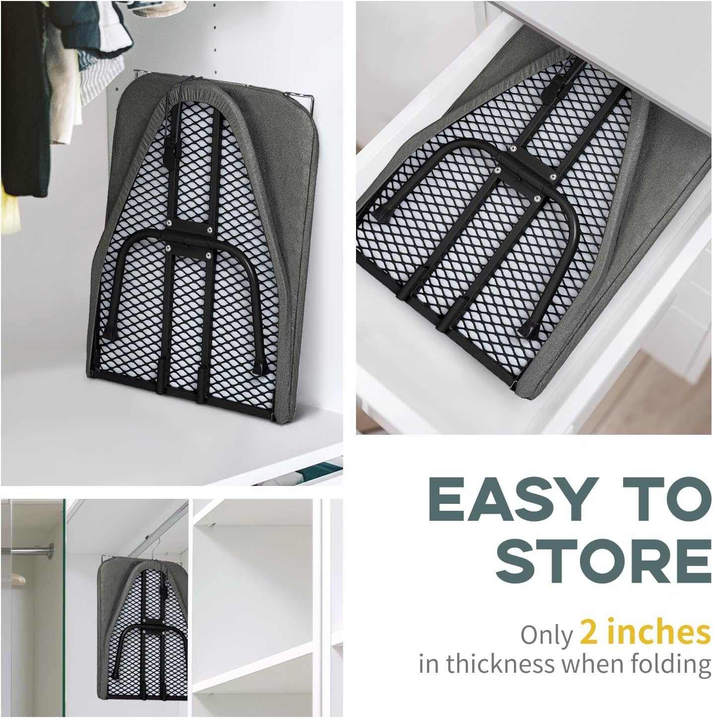 - Effortless Ironing: Completely flat and seamless cushioned surface when open, the metal mesh panel with a heat-resistant 100% cotton cover and pad helps to dissipate heat more quickly